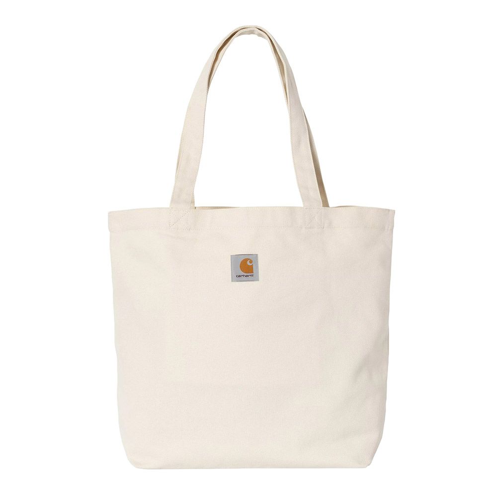 Carhartt WIP Canvas Graphic Tote in Natural colorway with Helix Print, bag in sturdy 11.4-ounce uncoated Dearborn canvas. The unlined construction maintains lightness while internal binding reinforces stress points for greater durability. 15-liter capacity distributed across 37 x 46 x 14 cm dimensions ideal for daily use. The internal mobile pocket adds practical organization. Front graphic print and flag label complete the classic workwear design.