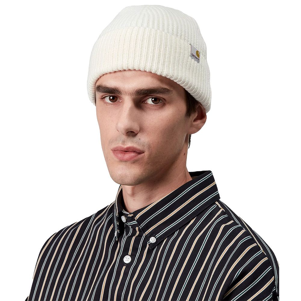 Carhartt WIP Gabe Beanie, knit beanie in blend 90% wool and 10% cashmere with 5 gauge. The cashmere percentage gives elevated softness to the touch, while wool guarantees warmth and resistance. The 5 gauge produces a medium thickness knit with defined texture. Elasticized rib construction offers controlled fit and adaptability to different circumferences. Height of 18.5 cm allows classic wearability with or without fold. Discreet Carhartt WIP label applied on fold. One size.