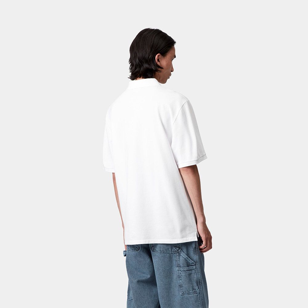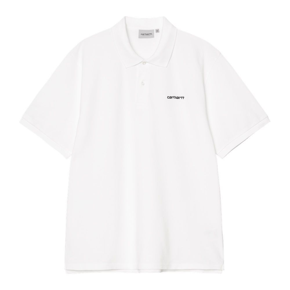 Carhartt WIP S/S Carhartt Script Polo, short-sleeve polo shirt made from medium-weight garment-washed cotton piqué. Features a loose fit and minimal detailing, with a buttoned half-placket and tonal embroidered logo at the chest. A staple redefined with relaxed structure and subtle branding.