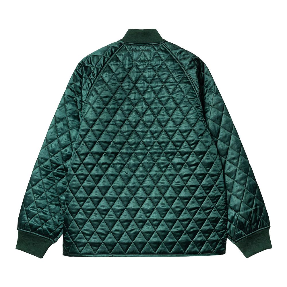 Carhartt WIP Alumni Liner is a padded jacket with contemporary varsity design that combines sports aesthetics and urban functionality. Made from 100% polyester satin with quilted construction, this liner jacket offers thermal insulation and comfort for cooler days. The satin fabric provides shine and character to the garment, while the quilting ensures uniform warmth and prolonged comfort. The knitted collar and cuffs complete the sporty aesthetic and improve fit by retaining body heat. Raglan sleeves offer greater freedom of movement and a modern relaxed silhouette. The front closure with snap buttons ensures practical use and long-lasting durability. Two chest patch pockets add functionality for essential items, while the graphic embroidery gives personality to the clean design. Perfect for autumn layering and as a standalone piece on cooler days. Ideal for those seeking versatile jackets that combine thermal comfort and urban style. Experience the practicality of a garment that adapts to every situation.