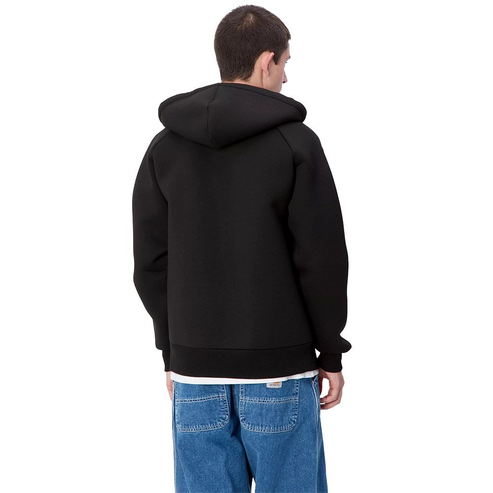 Carhartt WIP Car-Lux Hooded Jacket, hooded jacket in Car-Lux fabric, heavy cotton-polyester blend with soft hand feel. The technical fabric offers warmth and water protection while maintaining comfort during outdoor activities. The adjustable hood and ribbed cuffs and hem ensure customizable fit and protection from elements. The front kangaroo pocket with square label adds practicality and brand identity. 50/50 blend that combines cotton comfort with polyester durability. Easily worn over sweatshirts and tees to create functional layering on variable weather days.