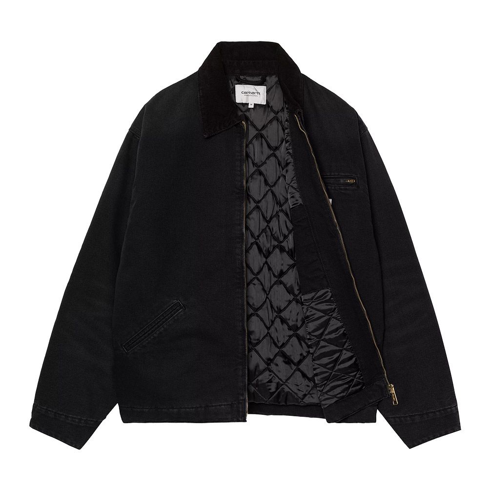 Carhartt WIP OG Detroit Jacket, original loose fit jacket in organic cotton Dearborn canvas with chalk wash treatment. The chalk washing creates a sun-faded effect with evident color variations on construction details. Body and sleeves feature warm lining, respectively in poplin and 100% nylon. The corduroy collar adds premium texture, while front zipper closure and chest zip pocket ensure functionality. Adjustable cuffs and hem allow fit customization. Triple stitching at critical points ensures structural durability. Internal chest pocket and signature square label complete the design.