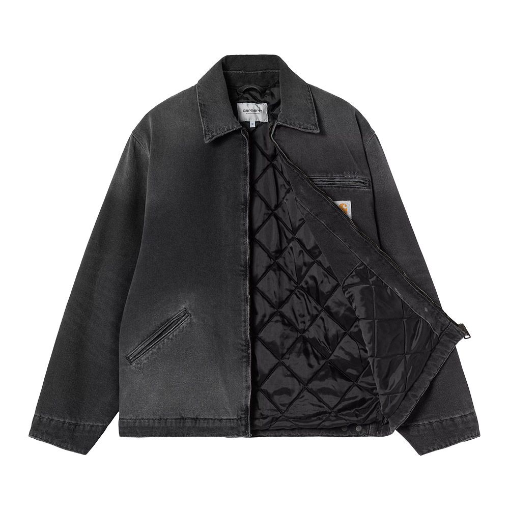 Carhartt WIP OG Detroit Jacket, iconic jacket built in heavy 100% cotton denim that offers elevated resistance to daily wear maintaining structure after repeated washing. The quilted matelassé lining with polyester padding creates evenly distributed thermal insulation, making the jacket suitable for winter temperatures without excessive weight that would limit movement. The original ample fit facilitates layering with heavy sweatshirts or thick sweaters underneath, a functional characteristic for those seeking a versatile jacket to wear all winter. Full front zip allows quick opening for thermal regulation. Two front welt pockets with direct access for daily items. Chest zip pocket offers secure space for phone or documents. The classic workwear lines easily integrate into contemporary urban outfits. Pocket lining in blend 65% polyester and 35% cotton resists wear in areas of greater friction. Carhartt WIP square label applied as distinctive detail.