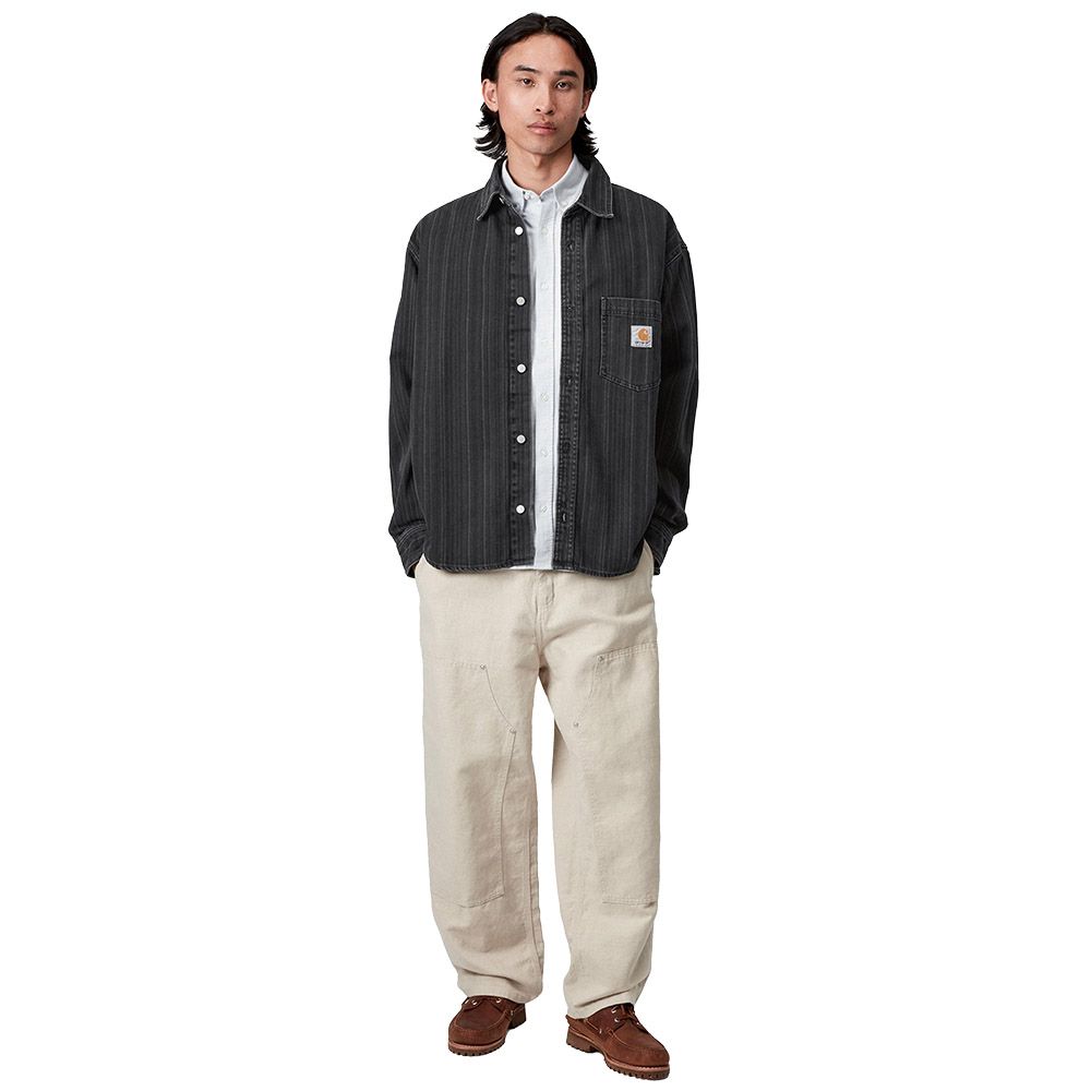 Carhartt WIP Rylan Shirt Jacket is a versatile shirt-jacket that combines denim durability and contemporary casual style. Made from heavy hampton denim in 100% cotton with allover stripes, this shirt jacket offers character and uncompromised durability. The unlined design makes it perfect for spring and summer layering or as a standalone piece on cooler days. The heavy denim texture ensures resistance to daily wear while always maintaining a neat and authentic appearance. The front button closure and chest pocket add functionality to the clean and essential design. The allover stripes create a distinctive pattern that sets this shirt-jacket apart from basic models. The square fabric label completes the brand's aesthetic. Perfect for those seeking versatile transitional pieces that adapt to casual and more structured looks. Discover the practicality of a shirt that also works as a light jacket.