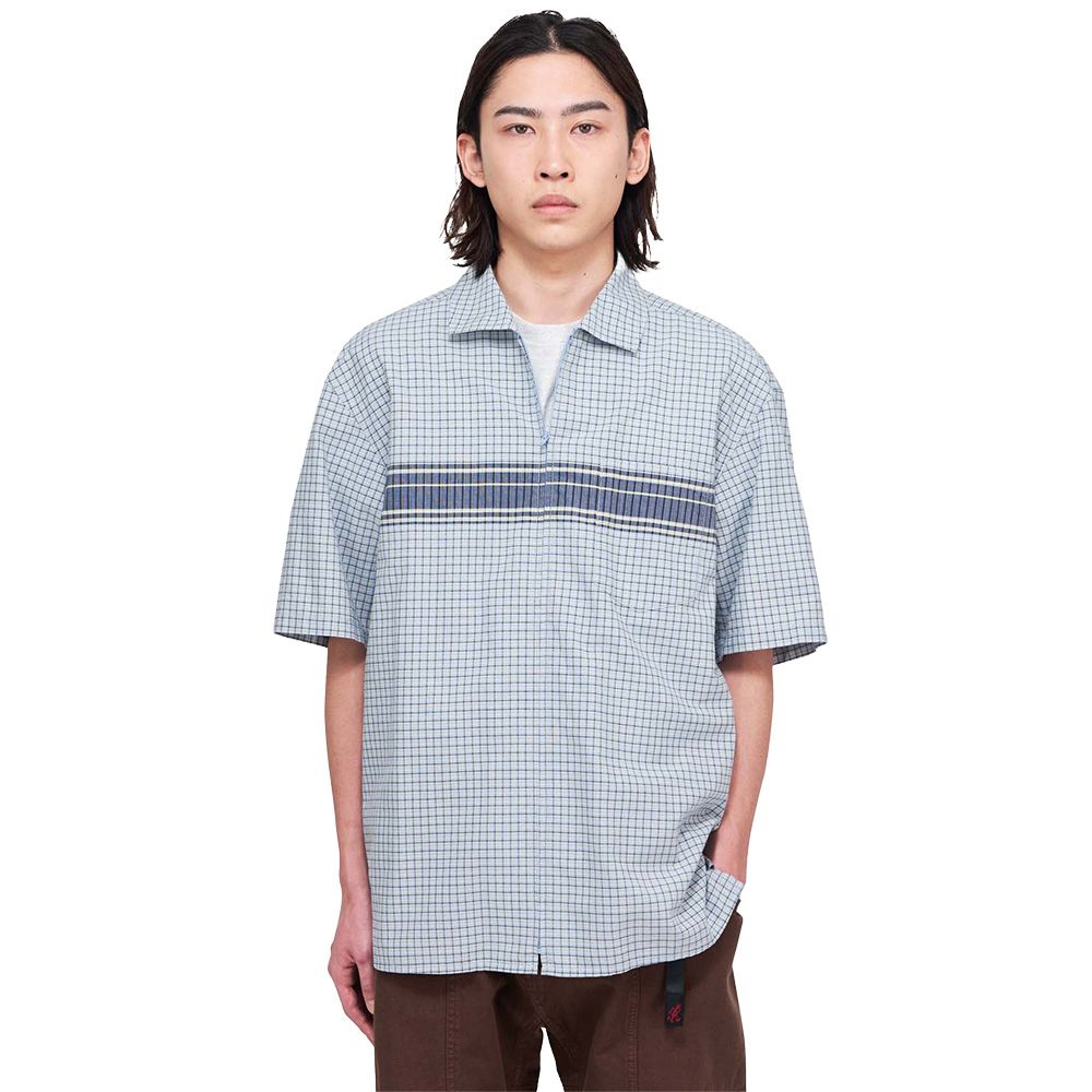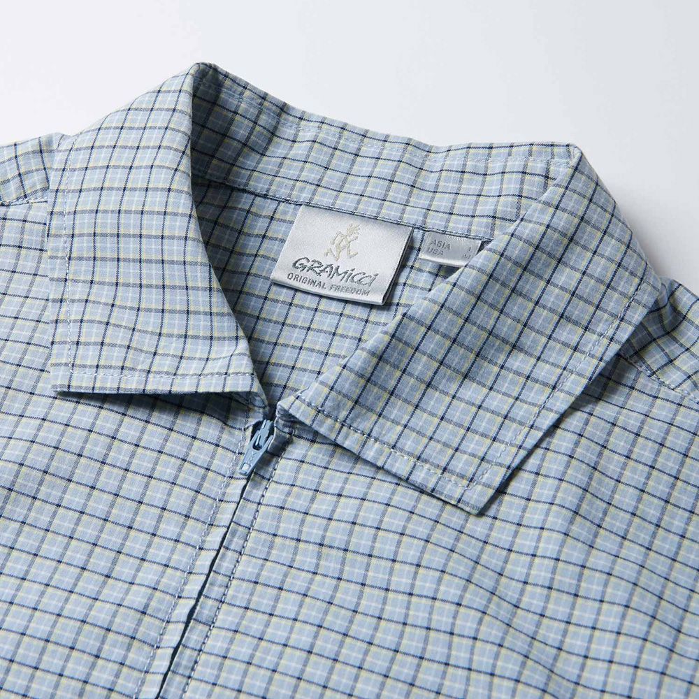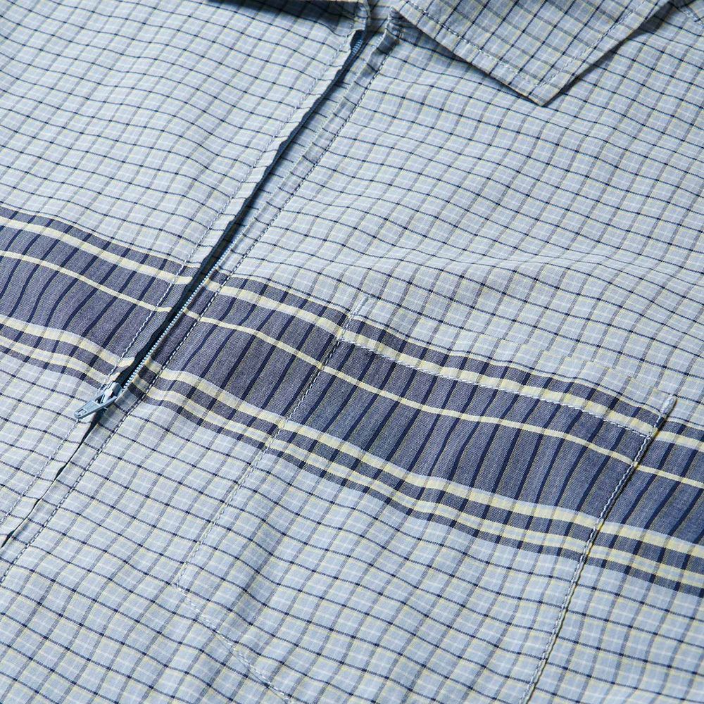 Gramicci Zip Up Wave Shirt, a lightweight summer shirt crafted from crisp cotton poplin. The zip closure evokes classic utility shirts, while the breathable fabric offers a fresh alternative to traditional workwear materials. Perfect for warm-weather adventures, with a unique woven pattern that sets it apart.