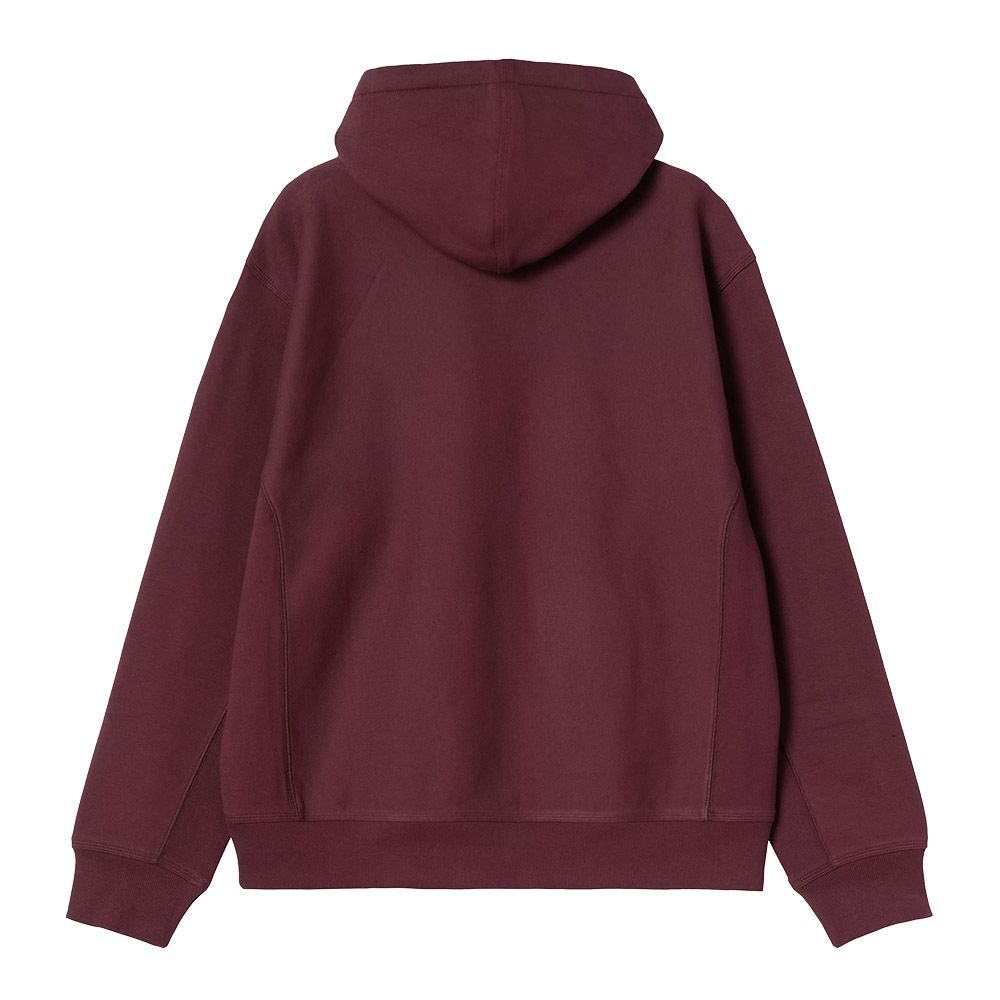 Carhartt WIP Hooded American Script Sweatshirt, hoodie in brushed cotton-polyester blend for optimal softness and warmth. The loose fit creates a wide, boxy silhouette typical of contemporary streetwear. The adjustable hood offers customizable protection, while the front kangaroo pocket maintains classic functionality. The American Script embroidery adds the brand's signature detail without excess. The internal brushing of the fabric ensures thermal comfort while maintaining breathability for everyday wear in various conditions.