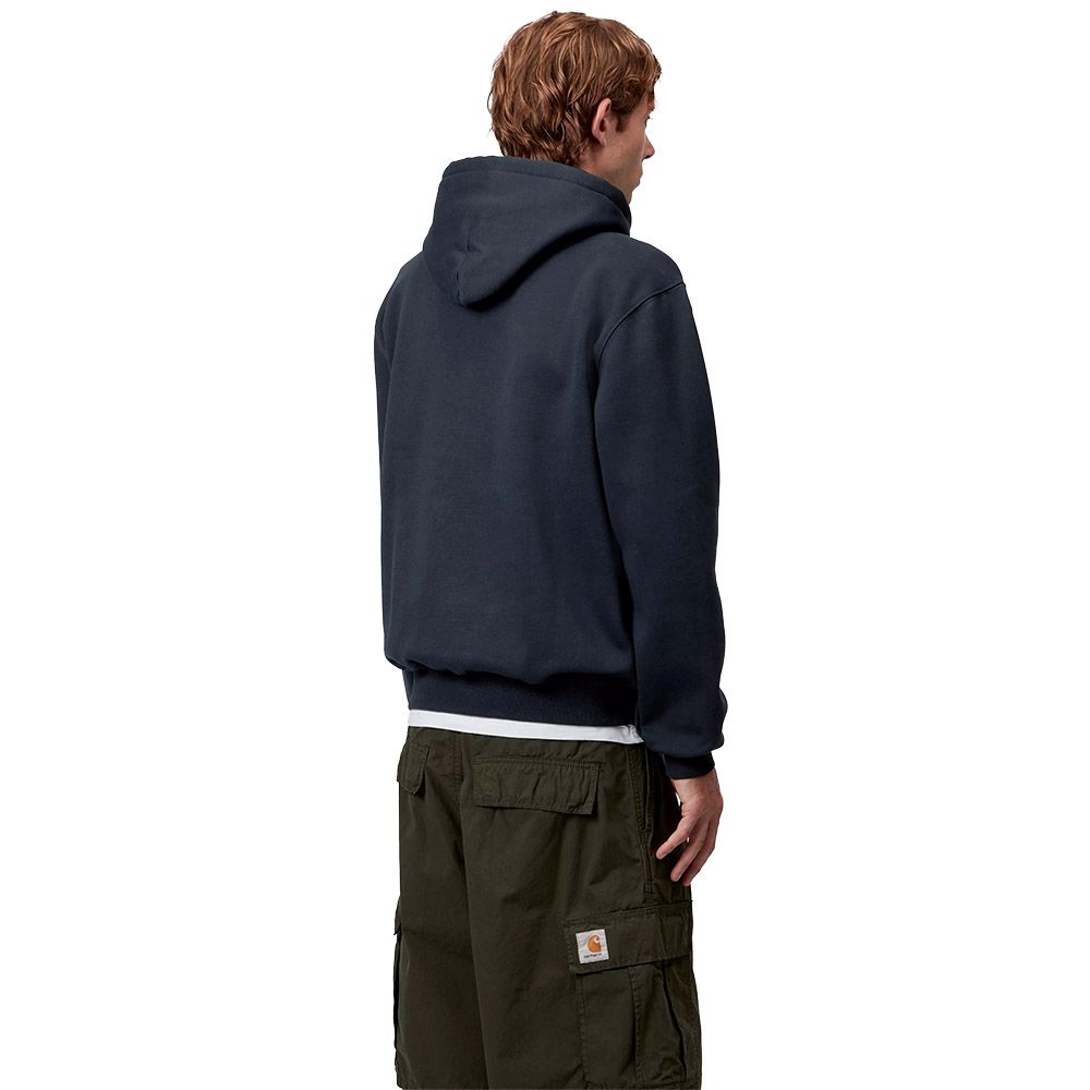 Carhartt WIP Hooded Carhartt Sweatshirt, hoodie in brushed polycotton jersey weighing 340 grams. The heavyweight fabric features a soft fleece-like interior that ensures warmth and comfort. The loose fit provides freedom of movement while the hood and front kangaroo pocket maintain classic practicality. The embroidered Script logo on the chest confirms the brand heritage. Robust construction built to last.