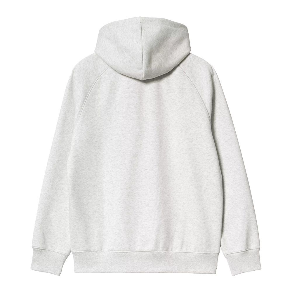Carhartt WIP Hooded Chase Jacket, hooded jacket built in heavy jersey 58% cotton and 42% polyester brushed for fleece texture. The polycotton blend combines cotton breathability with polyester resistance. Regular fit with standard lines and classic proportions. Raglan sleeves with diagonal seam from neck allow natural shoulder mobility. Knotted stitch detail applied as decorative finish. Full front zip closure. Adjustable hood with drawstring. Kangaroo pocket on front. Carhartt C logo embroidered on left sleeve. Ribbed cuffs and hem maintain shape.