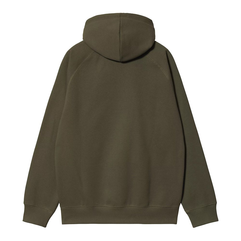 Carhartt WIP Hooded Chase Sweatshirt, hoodie in heavyweight brushed polycotton jersey for a fleece-like interior. The regular fit and raglan sleeves ensure comfort and natural movement. The knotted stitch adds technical detail to the construction while the front kangaroo pocket maintains practicality. The embroidered "C" logo on the left sleeve marks brand belonging. Robust 58% cotton and 42% polyester fabric built to last.