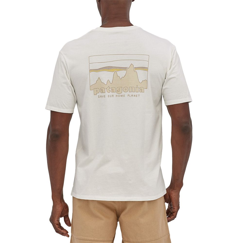 Patagonia Men's '73 Skyline Organic T-Shirt, featuring a vintage-inspired graphic based on one of Patagonia®'s earliest products. This everyday organic cotton t-shirt is made by saving 84% water and generating 16% less CO₂ compared to a conventional cotton t-shirt. The garment is produced in a Fair Trade Certified™ facility.