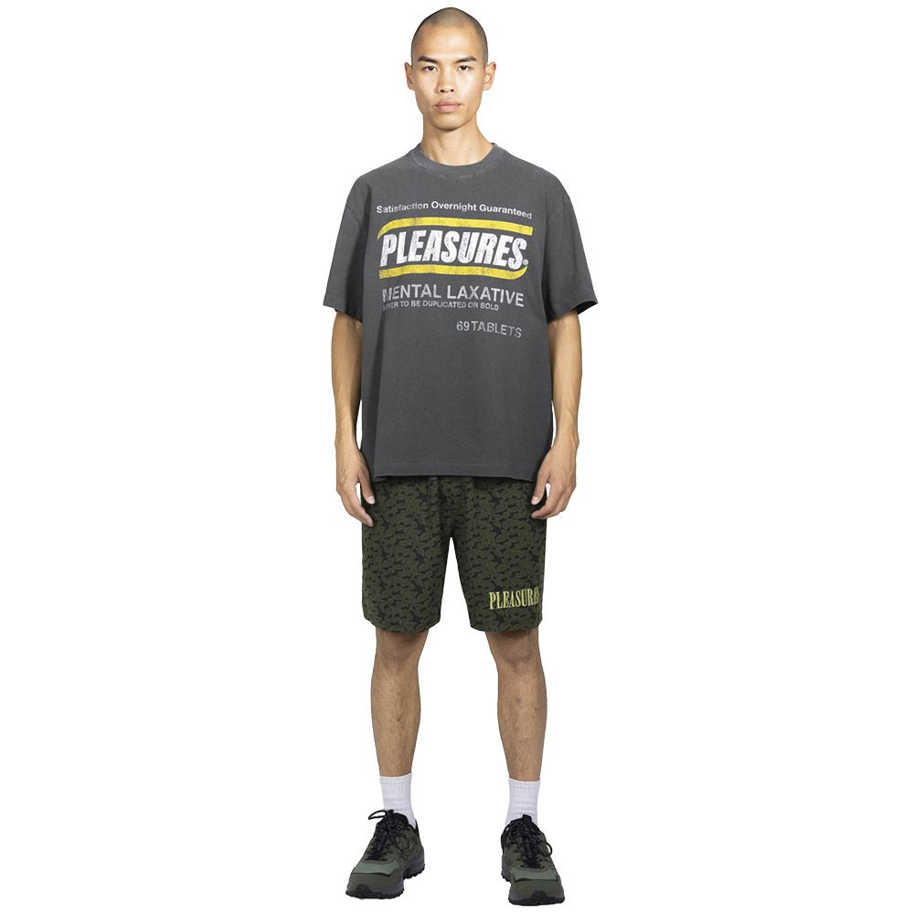 Pleasures Relief Heavyweight Shirt, a 260 GSM jersey t-shirt with pigment dye that gives the garment a worn-in appearance from first wear. The robust weight provides structure and heft to the fabric, ensuring a piece that holds its shape and withstands daily wear. Graphics are executed with plastisol printing, a technique that creates a raised layer on the fabric surface with matte and tactile finish. Pigment dye treatment produces variable tones and irregular fading, making each piece slightly different from another. A heavyweight tee built to last.