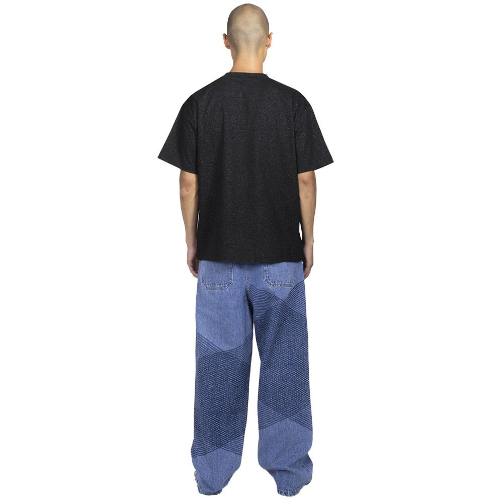 Pleasures Starry Heavyweight Shirt, a t-shirt in 100% cotton jersey with 240 GSM weight. The fabric has body and structure thanks to increased weight compared to standard tees, ensuring a solid garment that maintains its shape over time. The surface features glitter details that catch the light, while the Pleasures logo is printed on the piece. Cotton jersey remains soft despite the robust weight. A heavyweight t-shirt built to last, with sparkle elements that add visual character.