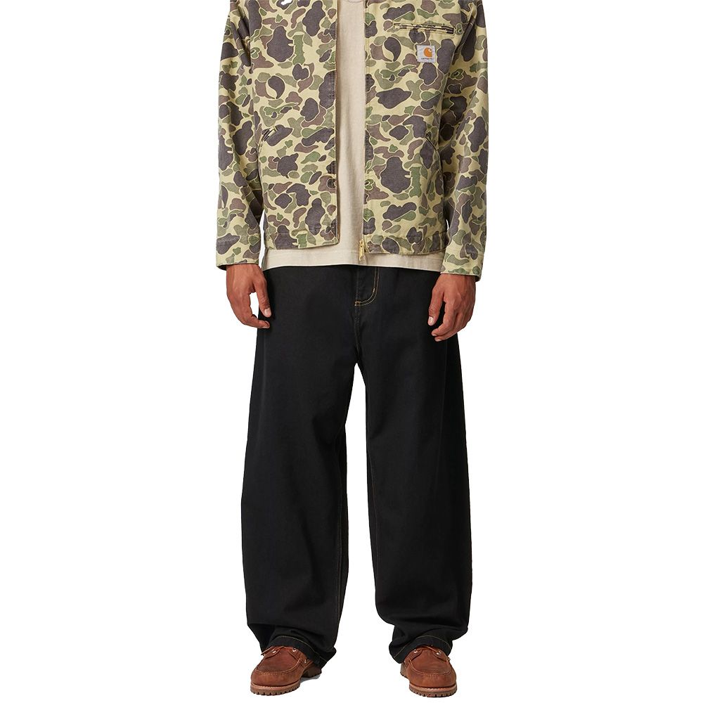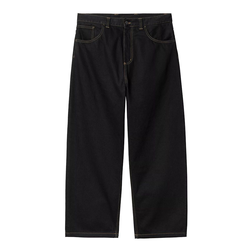 Carhartt WIP Brandon Pant, trousers built in heavy 100% cotton Smith denim. Smith denim is characterized by robust and resistant structure typical of Carhartt workwear garments. Loose straight fit with low crotch that lowers the waist point and wide straight leg from knee to bottom. The model wears large compared to standards, it is recommended to choose one size smaller for closer fit. Reinforced back yoke following workwear tradition increases resistance in the most stressed area during movements. Numerous pockets offer functional space for daily items. Front fly with zip closure. Carhartt WIP square label on back pocket.