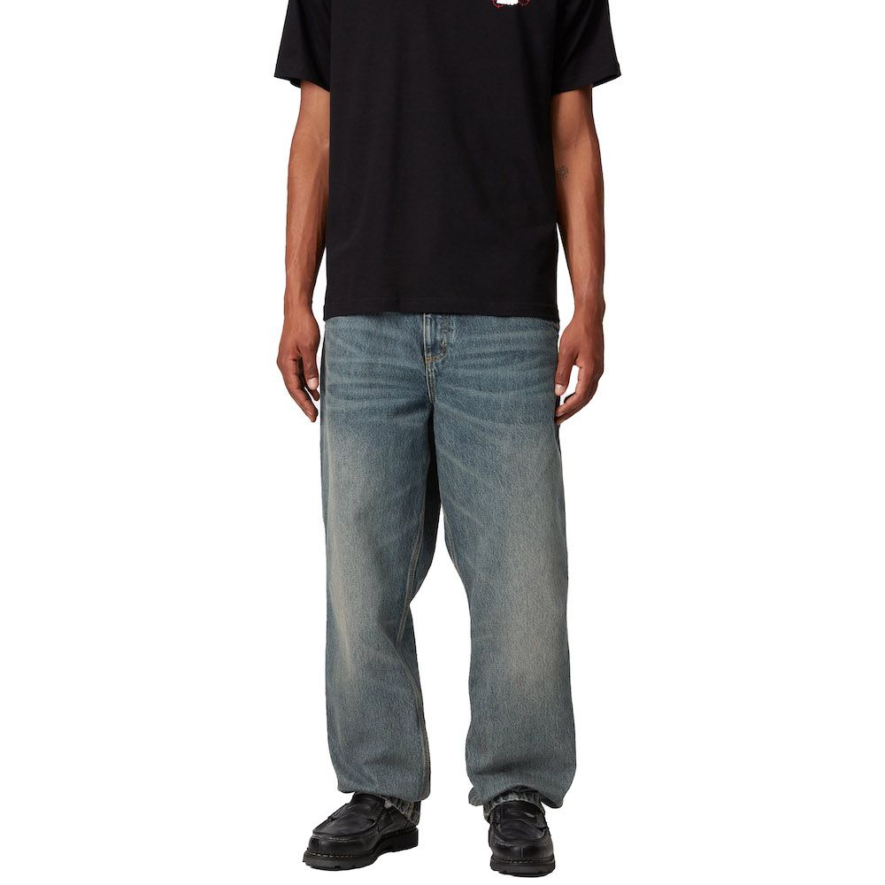 Carhartt WIP Single Knee Pant, workwear trousers in 13.5-ounce Dearborn Canvas cotton with relaxed straight fit and regular rise. Inspired by classic work pant silhouettes with functional details: tool pockets and hammer loop. Triple stitching for superior durability in stress areas. Stone Canvas treatment with oxidizing ozone technology reduces water and chemical usage providing lived-in light appearance with subtle scraping effects. Zip fly ensures secure closure while Square Label on back pocket confirms brand identity. The 13.5-ounce canvas offers durability that softens with wear while maintaining structure. For those seeking trousers with authentic workwear DNA without compromising on robustness.