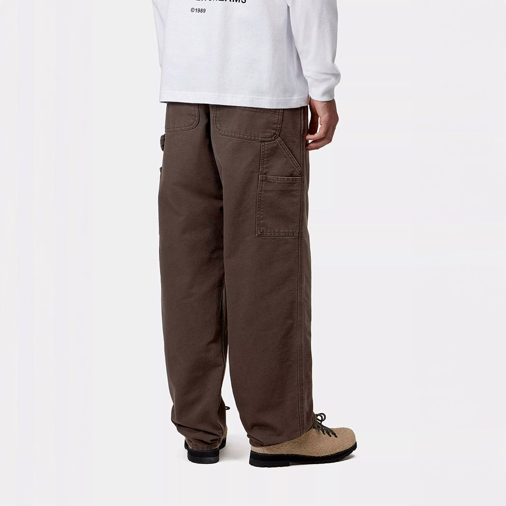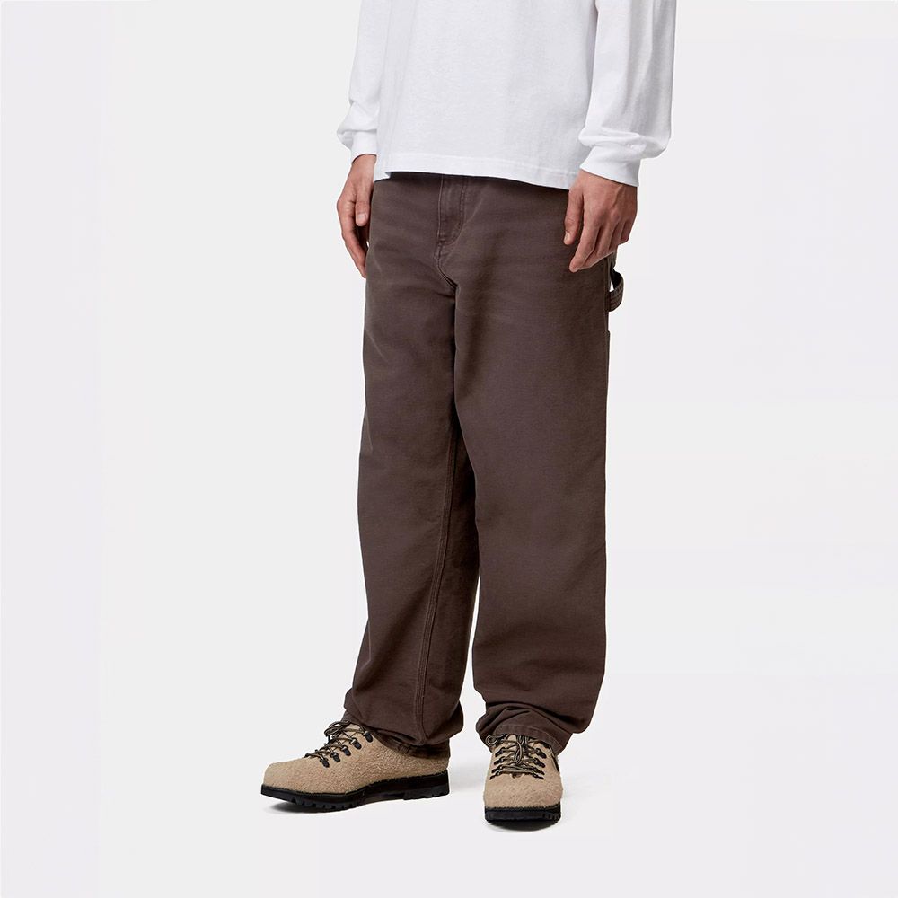 Carhartt WIP Single Knee Pant, work pant in heavy 12 oz organic cotton Dearborn canvas. The relaxed straight cut with regular rise offers comfort and freedom of movement for daily wear. The robust construction features triple stitching and bartack reinforcements at stress points for extreme durability. Side tool pockets and hammer loop maintain original workwear functionality. The zip fly ensures secure closure while the signature square label identifies the brand. Essential design balancing work heritage and contemporary urban versatility.
