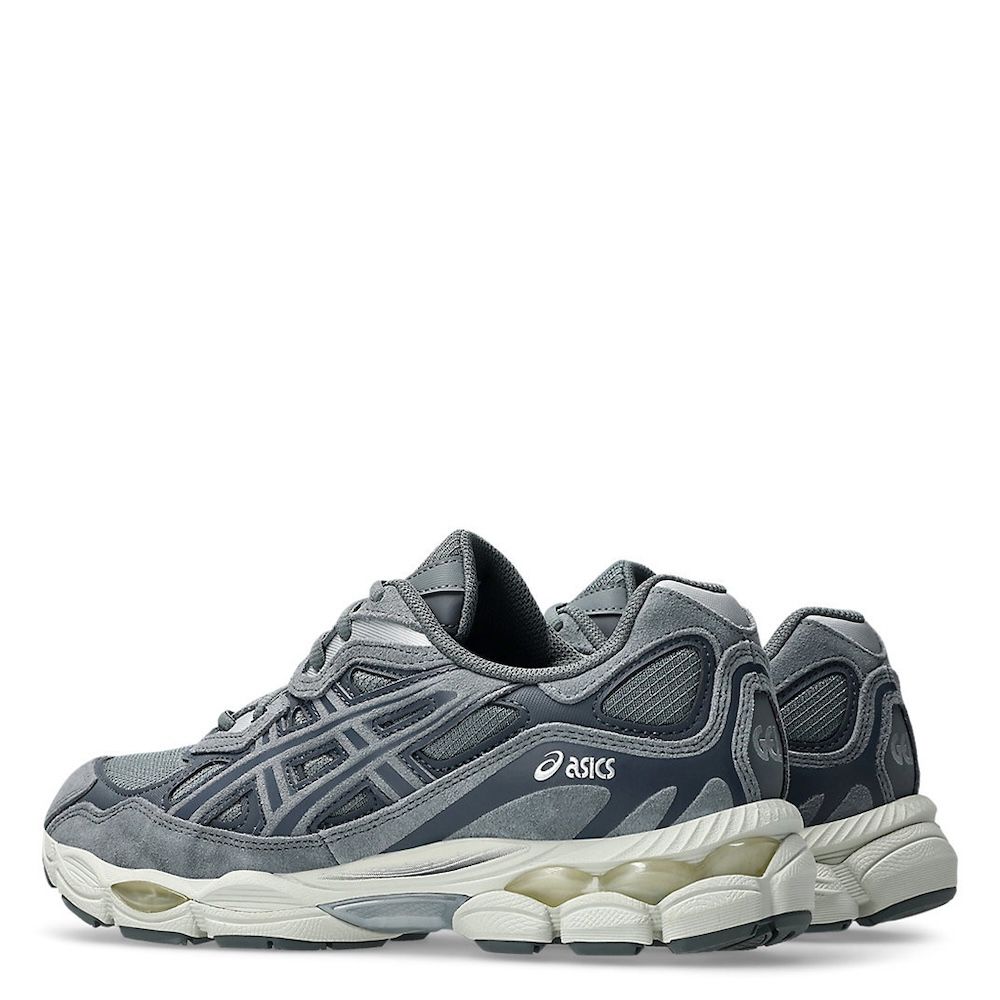 Asics Gel-NYC Steel Grey/Carrier Grey, sneakers merging 2000s performance design with today's fashion-forward sensibility. The upper draws from the GEL-NIMBUS 3 and GEL-MC PLUS V, built with layered suede and breathable mesh. Inspired by the GEL-CUMULUS 16, the midsole incorporates GEL technology in heel and forefoot, offering smooth everyday comfort. A must-have silhouette in today’s streetwear scene, ideal for laid-back and urban looks.