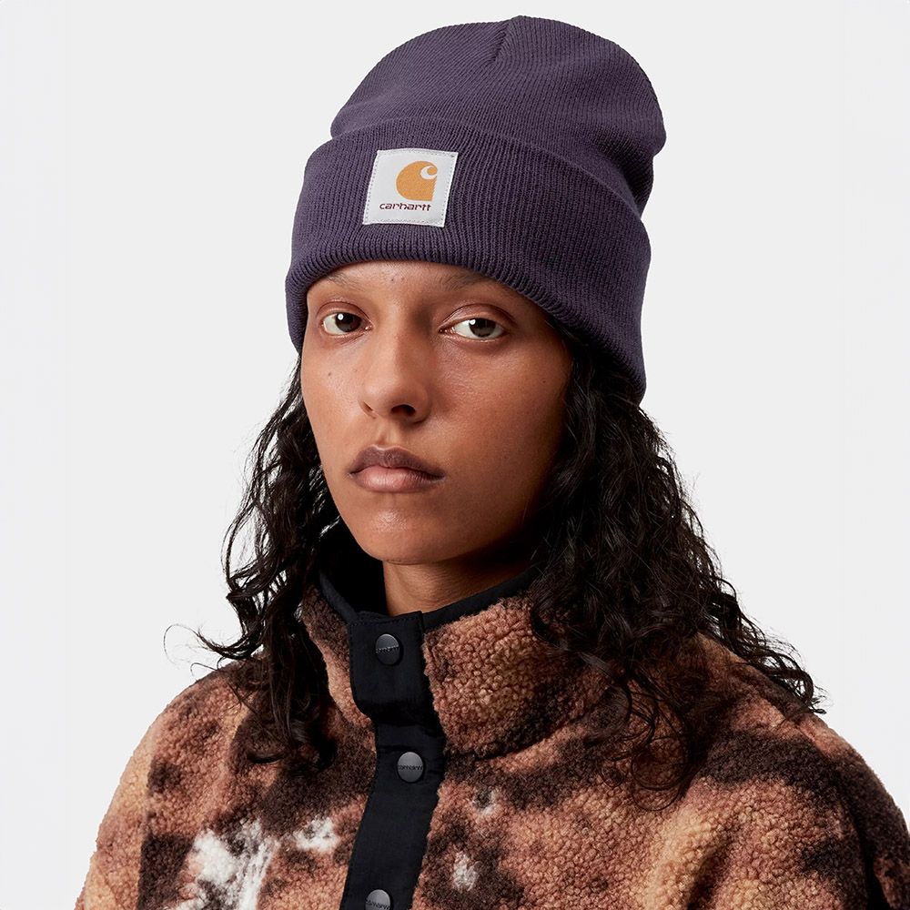 Carhartt WIP Short Watch Hat, knit beanie in 100% acrylic built with gauge 9. The gauge 9 creates a fine and compact knit structure while maintaining thermal insulation and resistance. Rib system with elastic properties allows natural adaptation and comfortable wearability on different head circumferences. The overall height of 21 cm defines a reduced wearability that follows the head contour avoiding fabric accumulation. Soft finish deriving from intrinsic qualities of acrylic fiber. Carhartt WIP square label integrated through weaving on front section. Universal size.