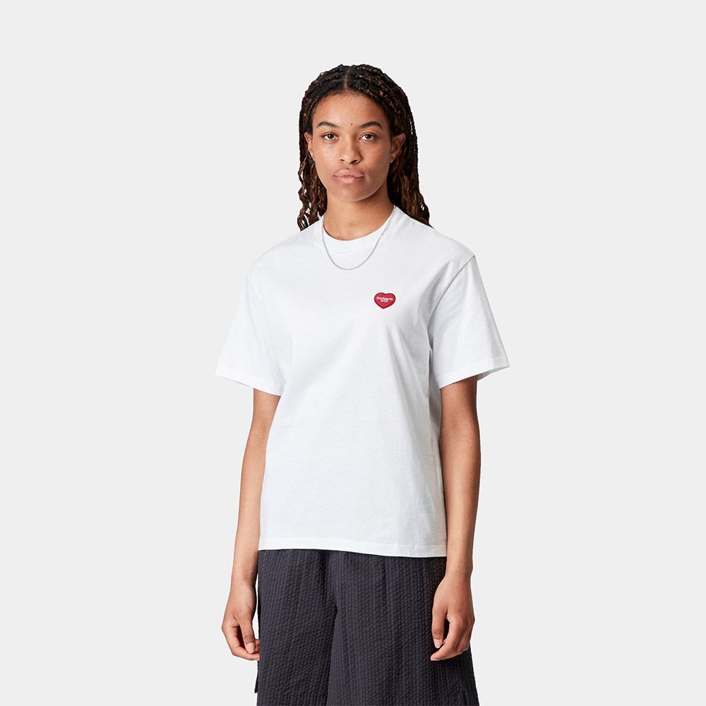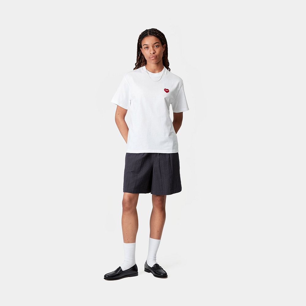 Carhartt WIP W' S/S Heart II Hartt T-Shirt, realizzata in jersey leggero di cotone biologico, è la t-shirt pensata per chi ama i dettagli insoliti e le grafiche giocose. Con una silhouette ampia e rilassata, si distingue per la stampa frontale e l’applicazione in tessuto a forma di cuore che aggiunge un accento visivo delicato ma d’impatto. Un mix tra romanticismo pop e spirito streetwear.