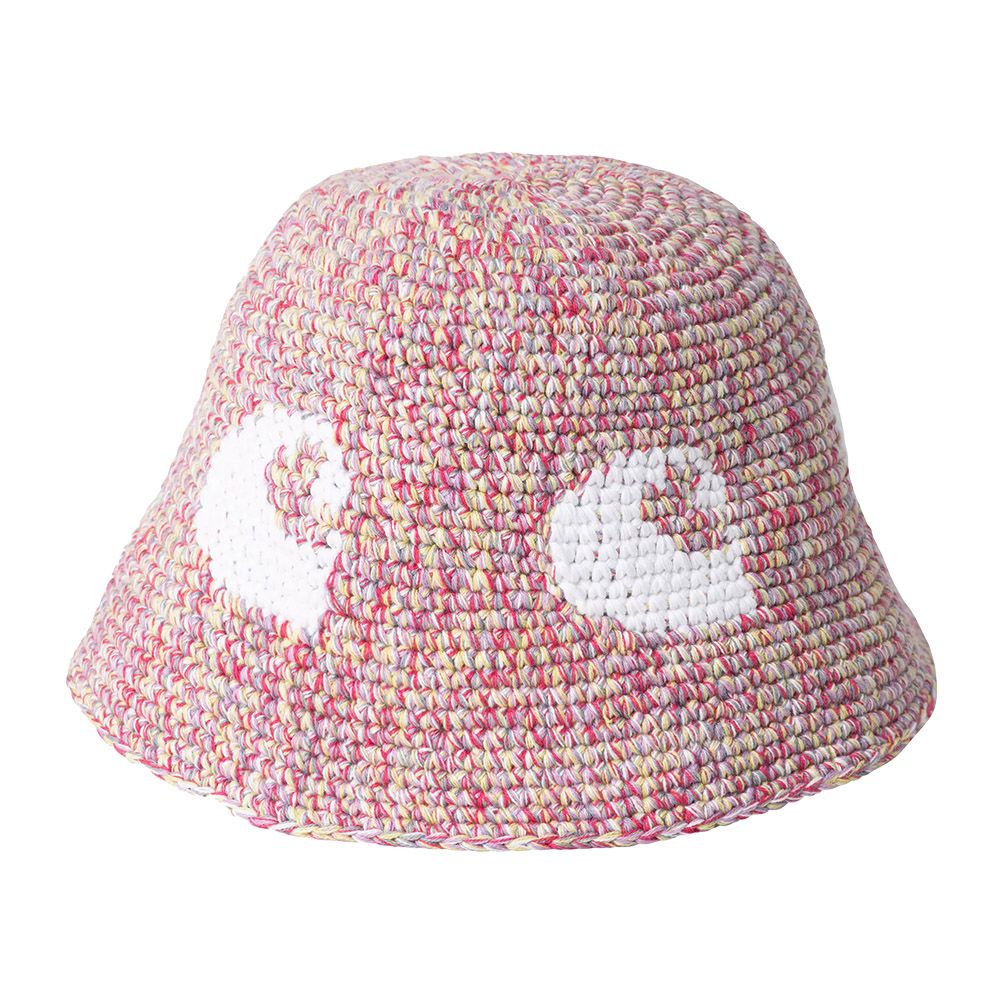 Carhartt WIP Cane Hat, bucket hat in maglia crochet di cotone con filato multicolore in tonalità rosa, lilla, giallo e bianco. Logo "C" jacquard bianco sul fronte.