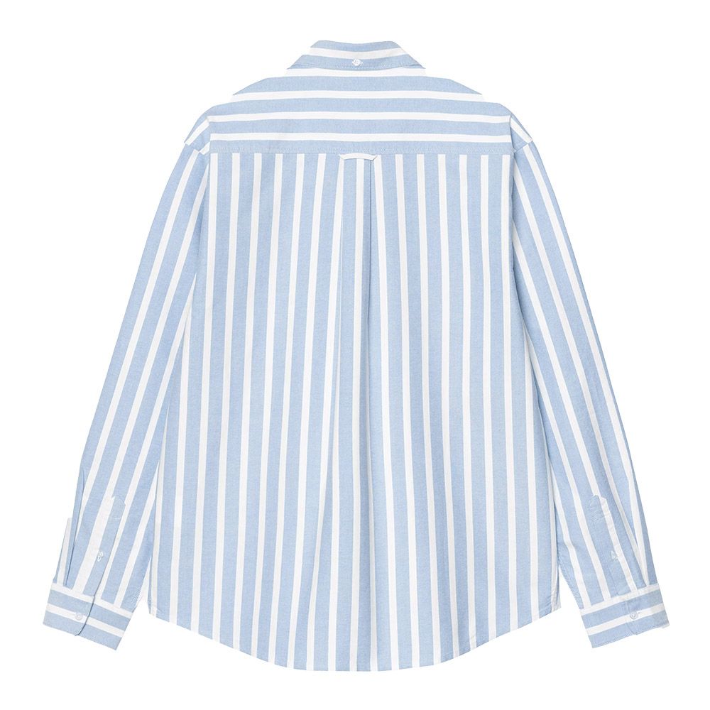 Carhartt WIP L/S Deven Shirt, camicia a maniche lunghe in cotone Oxford leggero con righe allover. Il tessuto è stato lavato per ammorbidirlo e dargli un effetto leggermente vissuto. Il fit è ampio. Logo "C" ricamato sul petto.