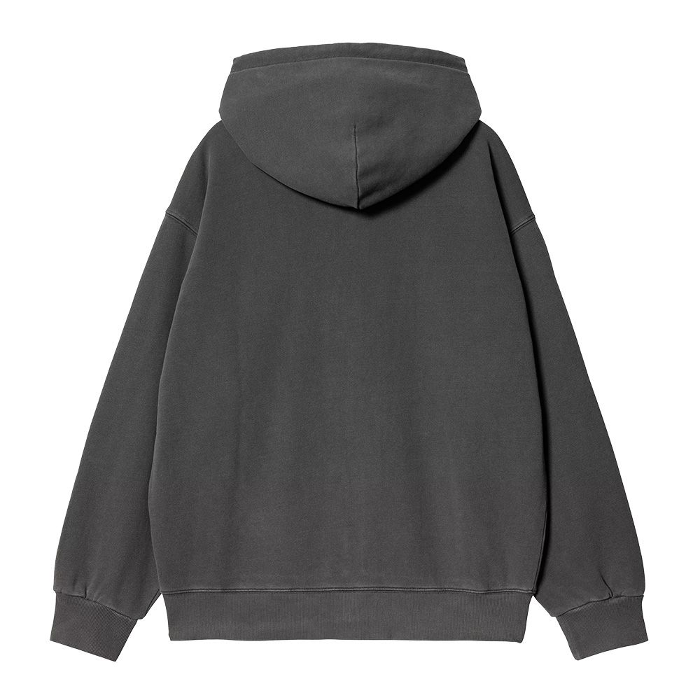 Carhartt WIP Hooded Nelson Jacket, giacca in pesante jersey di cotone non spazzolato con struttura loopback testurizzata. Tinta in capo per maggior morbidezza e una tonalità vissuta ma intensa. Fit balloon con spalle scese che rende la giacca ampia e comoda. Cappuccio regolabile con coulisse, chiusura a zip e tasca a canguro. Finiture a coste su polsini e orlo. Etichetta quadrata in tessuto sul petto sinistro, colorata dal processo di tintura in capo.