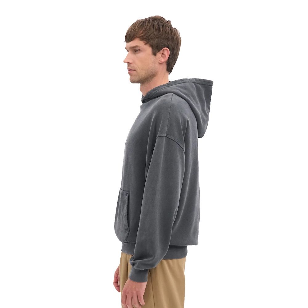 Colorful Standard Organic Oversized Hood, felpa in cotone organico tinto in capo. Il fit è oversize e leggermente cropped, morbido e rilassato. Cappuccio ampio, tasca a marsupio frontale. Il cotone organico ha una mano piena e traspirante. Prodotta in Portogallo.