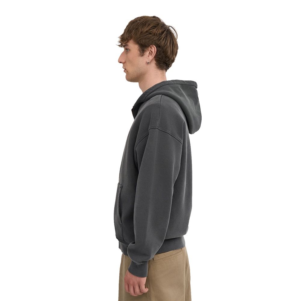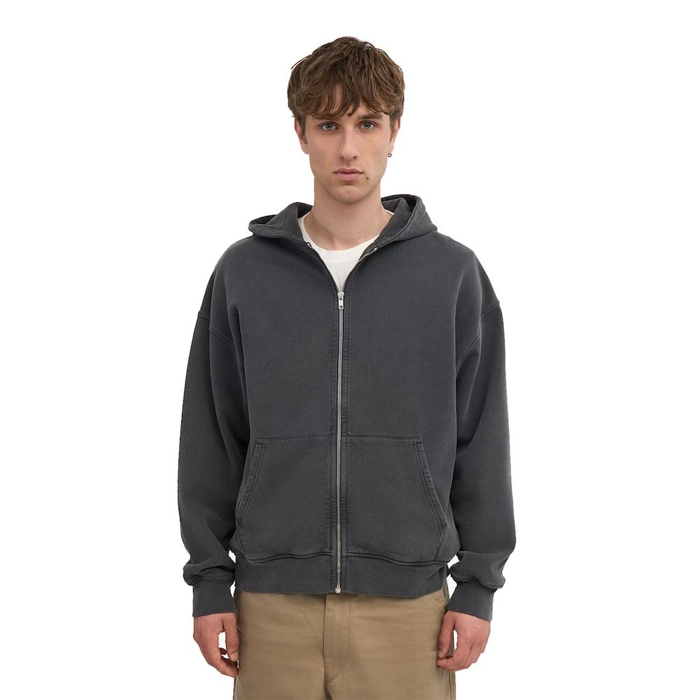 Colorful Standard Organic Oversized Zip Hood, felpa con zip in cotone organico tinto in capo. Il fit è oversize, morbido e rilassato. Chiusura frontale con zip a tutta lunghezza, cappuccio ampio, tasche profonde. Il cotone organico ha una mano piena e traspirante. Prodotta in Portogallo.