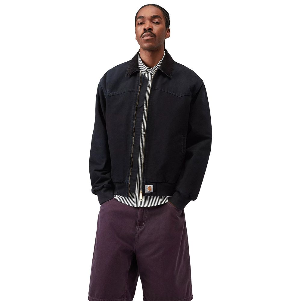 Carhartt WIP OG Santa Fe Jacket, iconica giacca in tela Dearborn dalla forte impronta workwear americana. Il cotone canvas pesante si abbina a una fodera trapuntata che garantisce isolamento termico senza appesantire la struttura del capo. Il taglio ampio e squadrato eredita le proporzioni oversize tipiche dell'abbigliamento da lavoro, perfetto per layering su felpe e maglie pesanti. Dettagli funzionali come il colletto in velluto a coste, le tasche laterali e quella interna sul petto completano un design pensato per durare. Le cuciture rinforzate con tripla impuntura assicurano resistenza nel tempo, mentre le finiture in maglia a coste su polsini e orlo definiscono una silhouette compatta e ordinata.