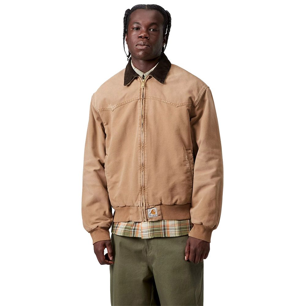 Carhartt WIP OG Santa Fe Jacket, giacca workwear in pesante tela Dearborn che incarna l'eredità americana del brand, rivisitata con sensibilità contemporanea. Il canvas di cotone robusto incontra una fodera matelassé che aggiunge calore e comfort nelle giornate più fredde, senza sacrificare la silhouette pulita tipica dello stile Carhartt WIP. La vestibilità ampia e leggermente squadrata permette una stratificazione facile sopra felpe e maglieria, adattandosi a chi cerca un capospalla versatile dal carattere deciso. Il colletto in velluto a coste ammorbidisce il profilo e protegge dal vento, mentre le tasche laterali e quella interna sul petto offrono spazio per l'essenziale. La tripla impuntura lungo le cuciture principali garantisce una durabilità che migliora nel tempo, sviluppando quel vissuto autentico che solo i capi in canvas sanno regalare.