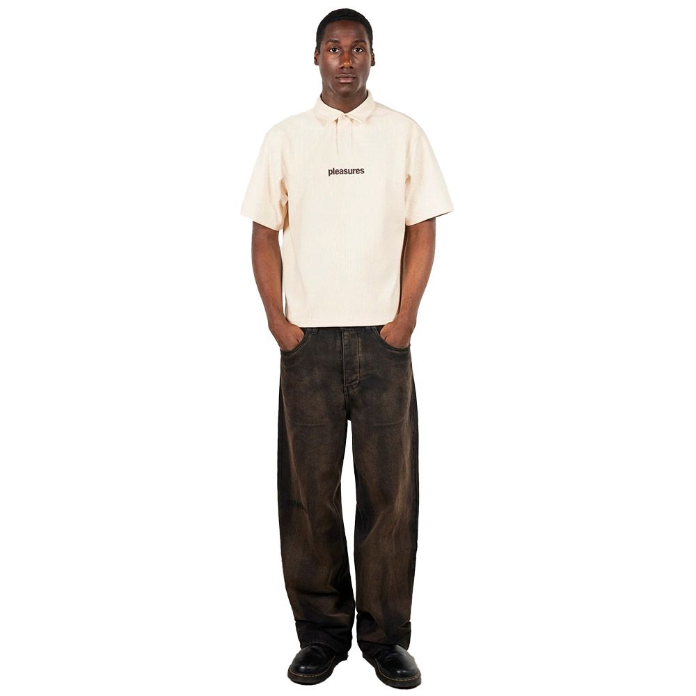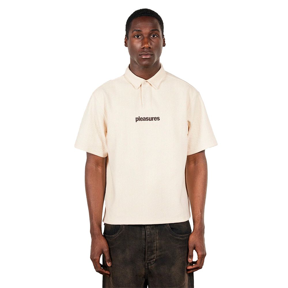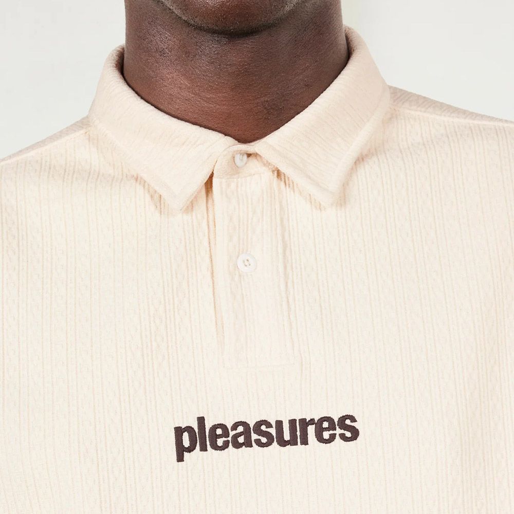 PLEASURES Cable Polo, polo in maglia con lavorazione a trecce verticali. Colletto classico con apertura a due bottoni, logo "pleasures" ricamato sul petto. Fit boxy. La composizione con elastan dà elasticità al tessuto.