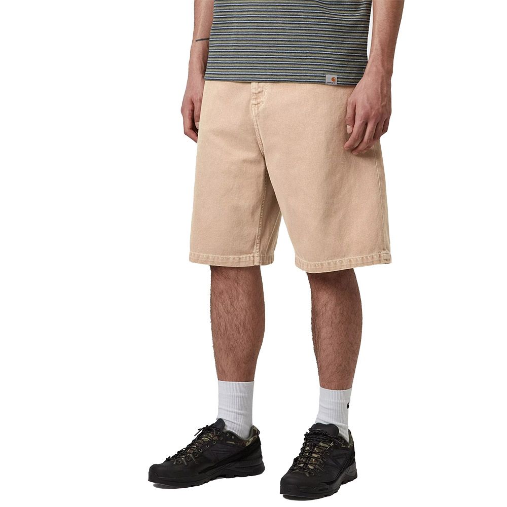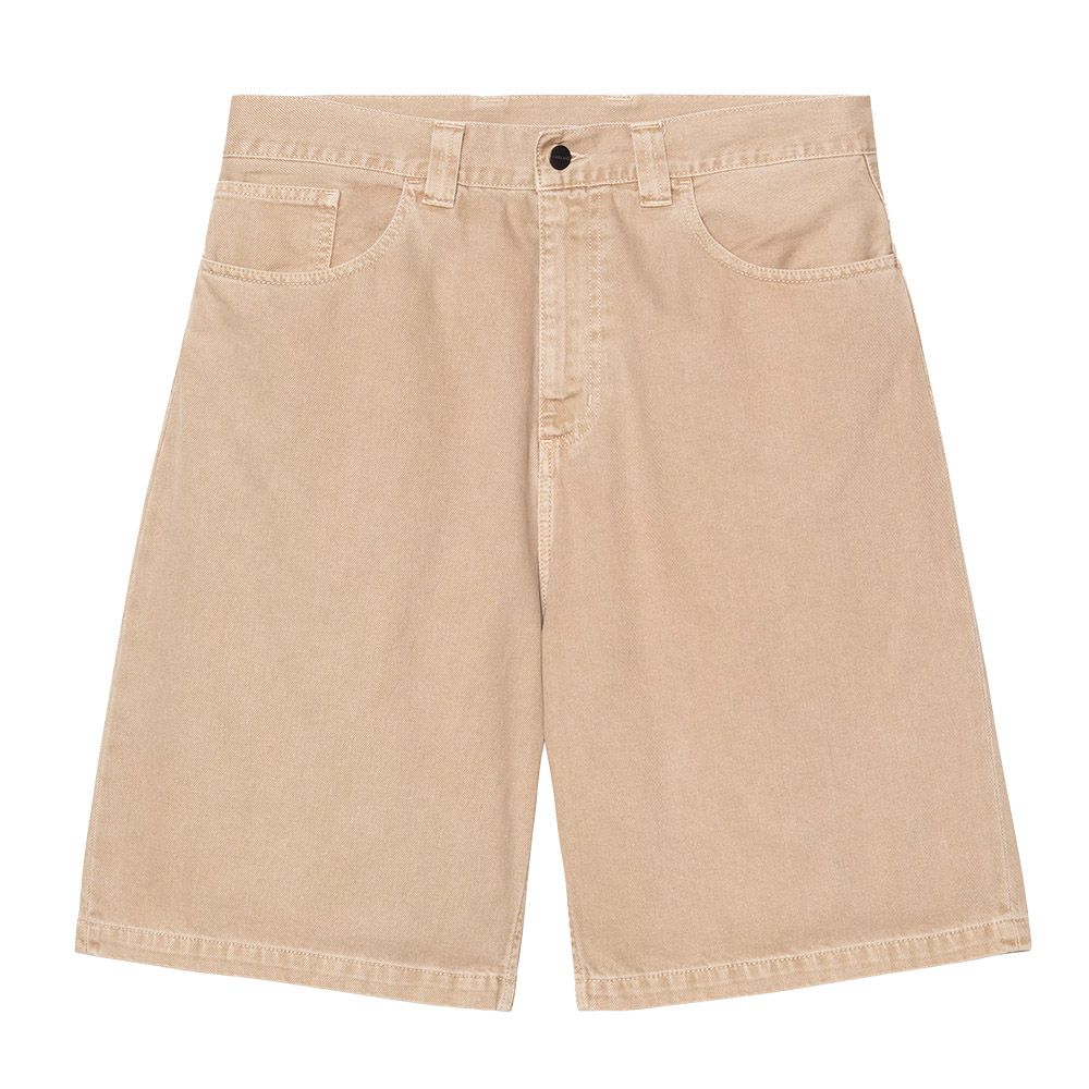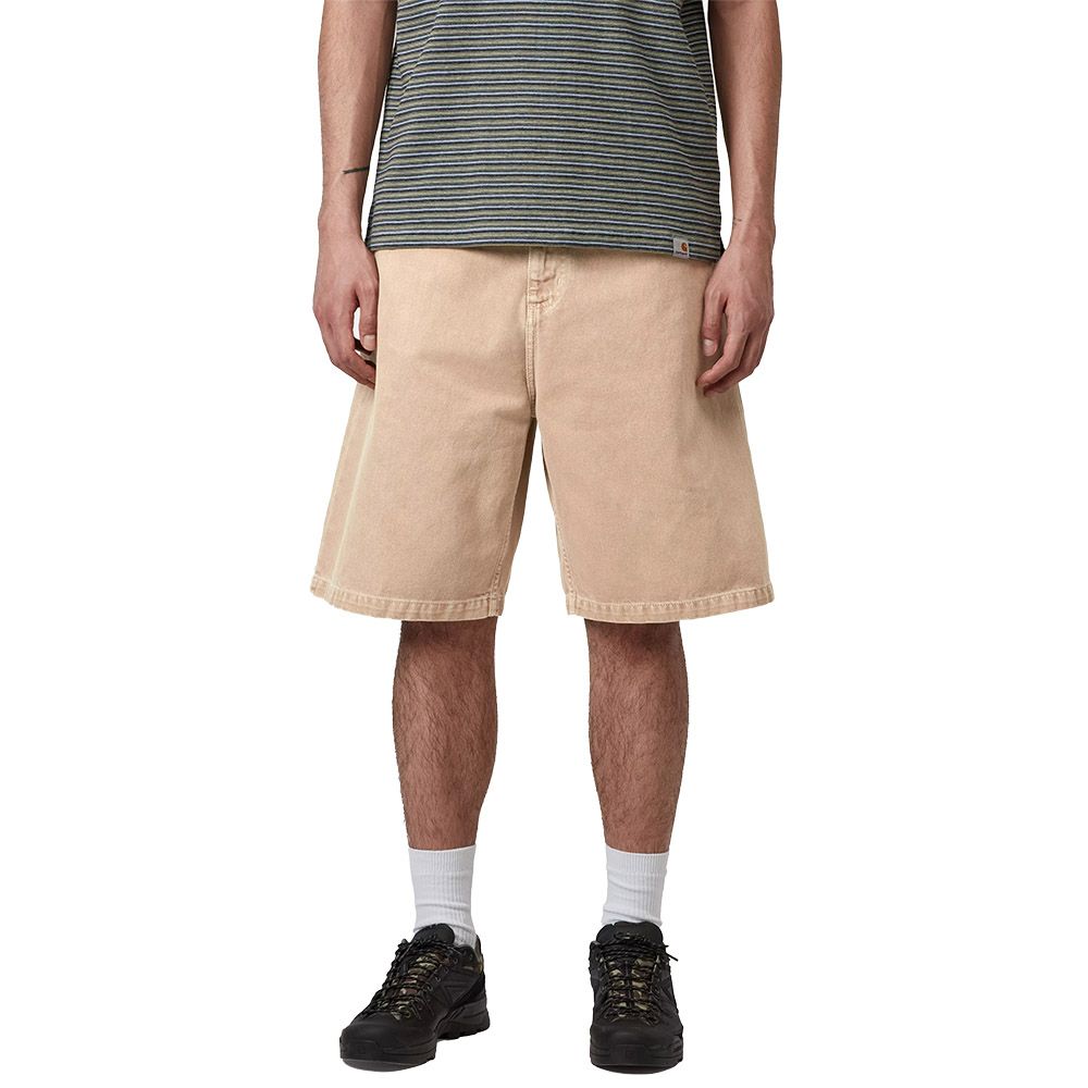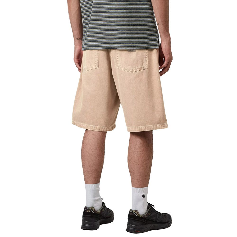 Carhartt WIP Brandon Short, short in denim di cotone pesante con vestibilità ampia e cavallo basso. Lavaggio stone-washed per un effetto sbiadito e leggermente consunto. Sprone posteriore, impuntura a travetta nei punti di maggior usura ed etichetta quadrata in tessuto. Tasca portamonete.