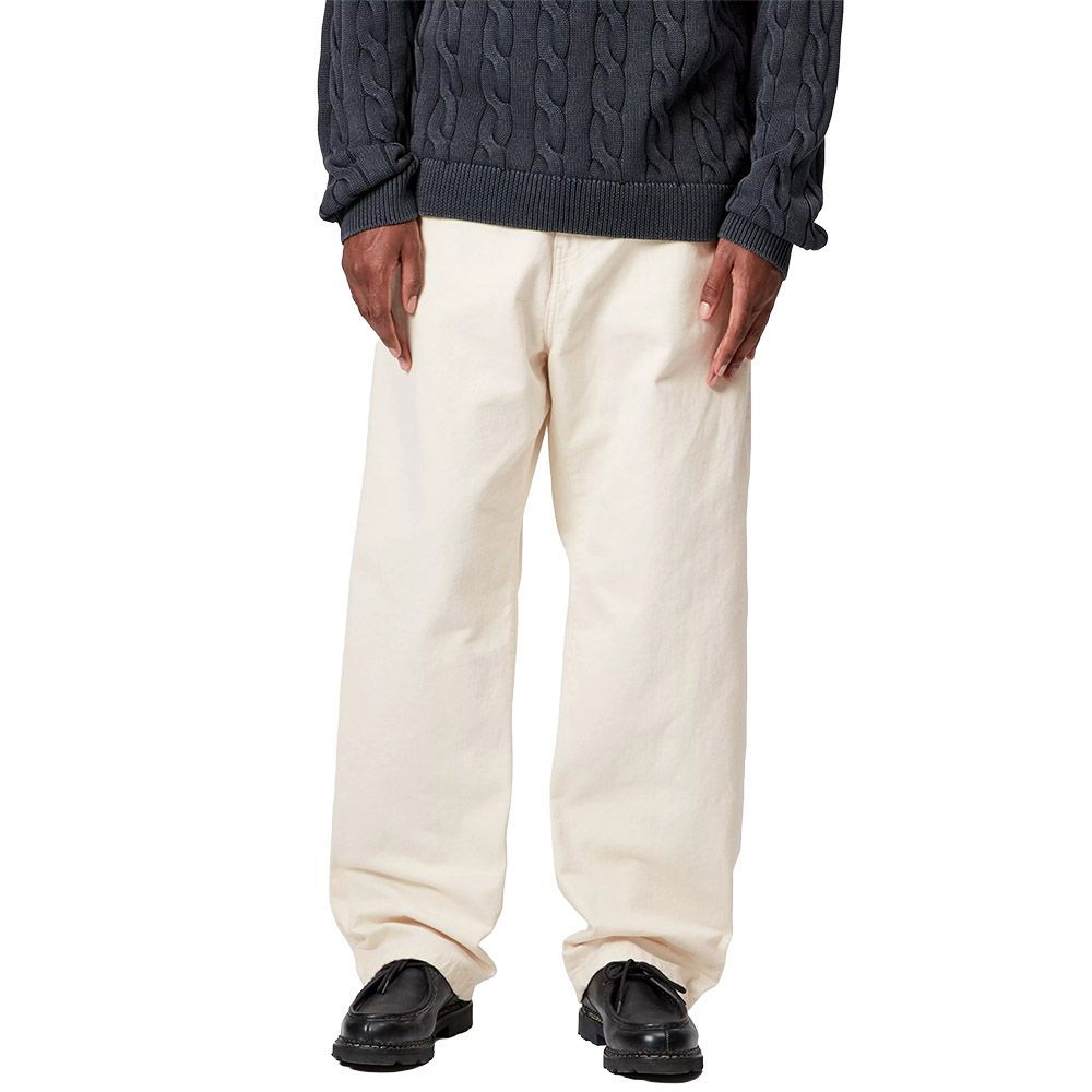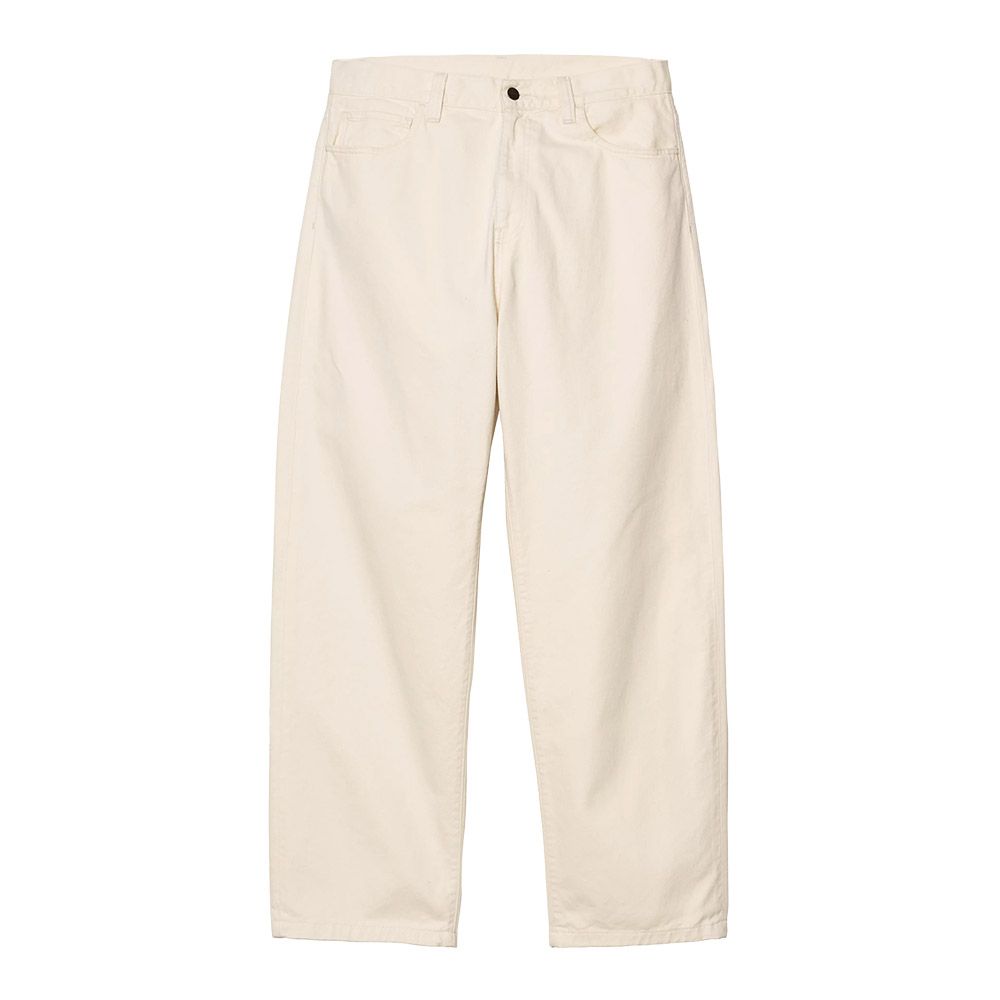 Carhartt WIP Landon Pant, pantalone in twill di cotone Bradford da 10 once con silhouette loose tapered e vita normale. La gamba presenta taglio largo nella parte superiore che si restringe gradualmente sotto il ginocchio per vestibilità contemporanea. Costruzione classica a cinque tasche con sprone posteriore per rinforzo nelle zone di stress. La patta frontale con zip garantisce chiusura sicura mentre l'etichetta quadrata in tessuto sulla parte posteriore conferma l'identità workwear. Tessuto robusto che si ammorbidisce con l'uso mantenendo la forma. Ideale con sneakers o boots per look urbani rilassati.