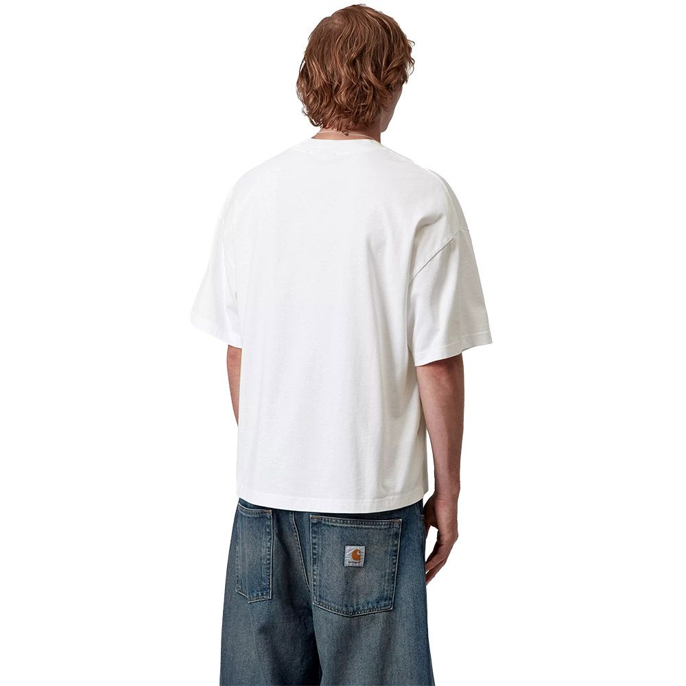 Carhartt WIP S/S Hackwork T-Shirt, t-shirt costruita in jersey 100% cotone di medio peso con trattamento stone wash per morbidezza elevata e aspetto leggermente vissuto. Fit boxy loose con linee ampie e squadrate. Manica corta. Stampa grafica sul petto.