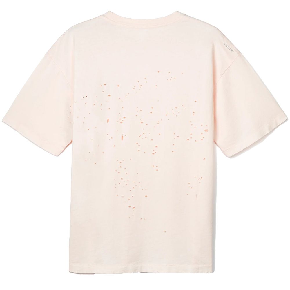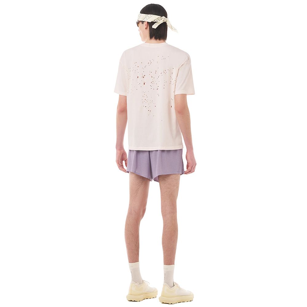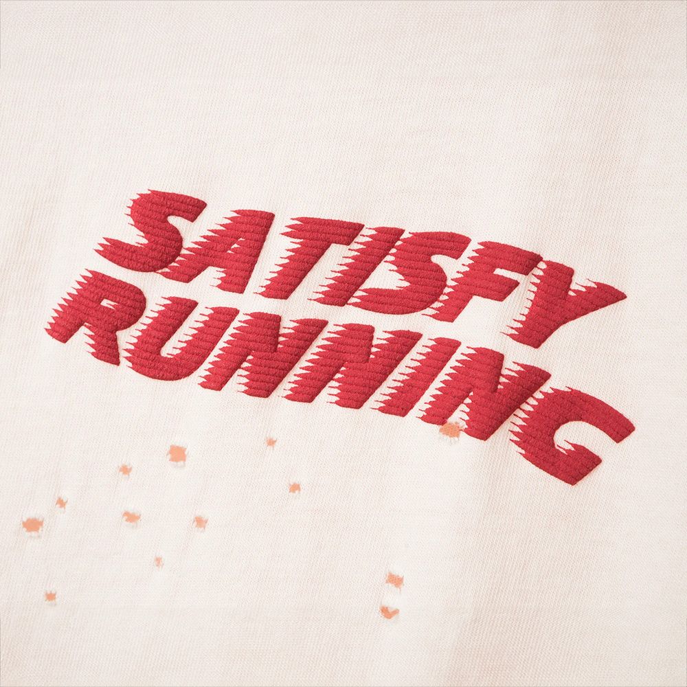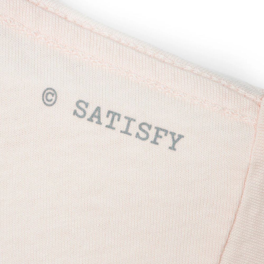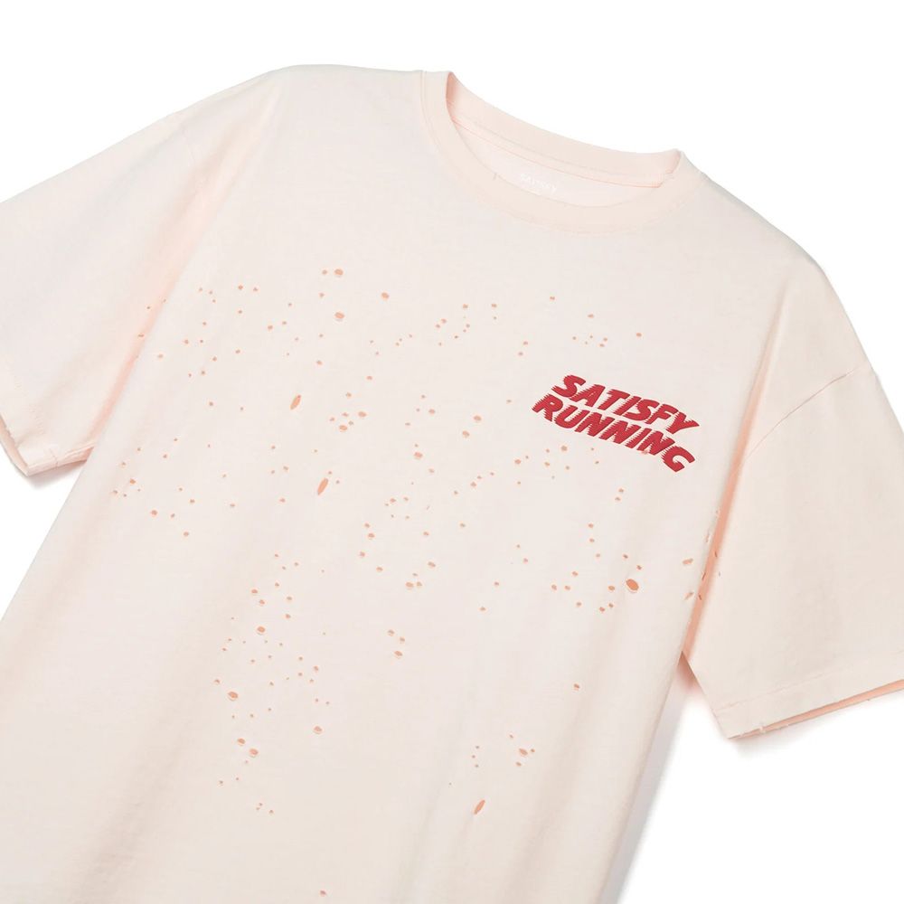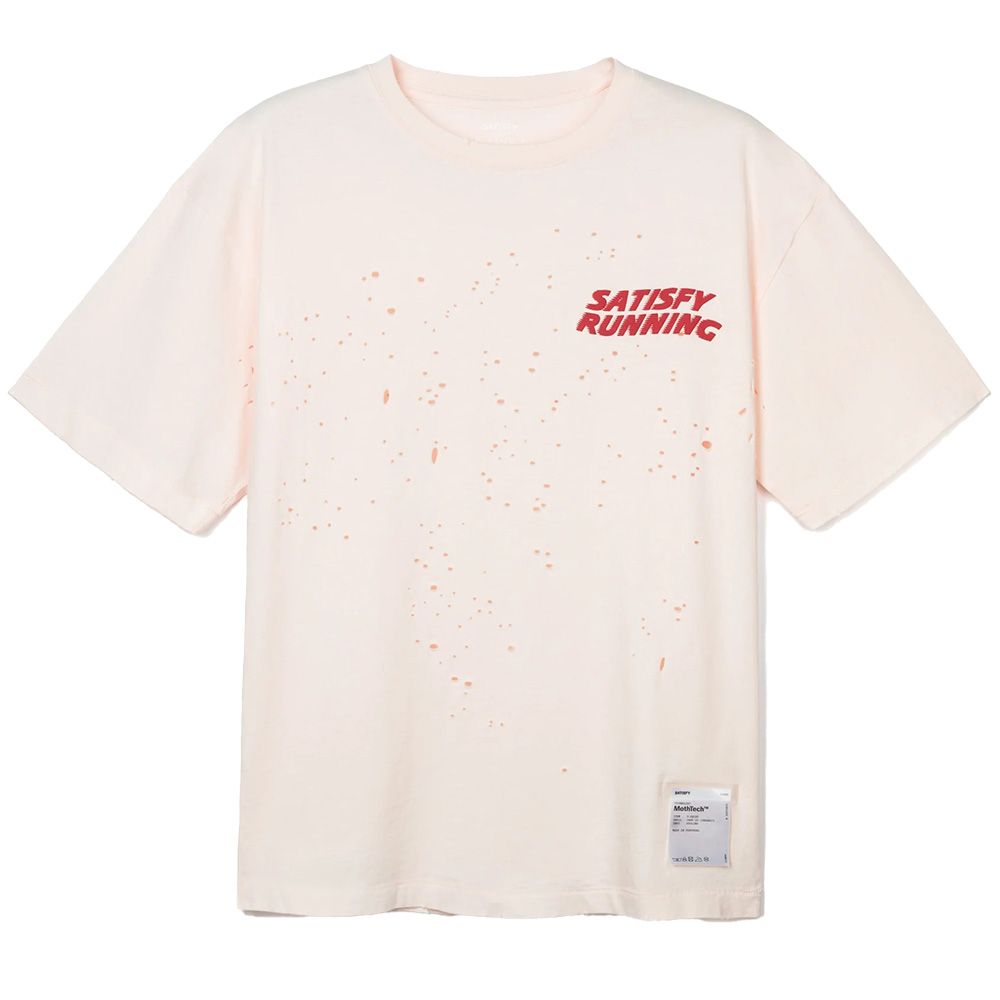 SATISFY MothTech™ T-Shirt, t-shirt in cotone organico pettinato da 175 grammi con fori laser per la ventilazione. Ogni foro è tagliato al laser e aperto a mano, seguendo una mappa progettata per il movimento e la dispersione del calore. Il tessuto ha un aspetto vissuto che migliora con l'uso — più la indossi, meglio diventa. Onda SATISFY stampata in inchiostro puff sul fronte, logo riflettente stealth che cattura la luce al buio. Etichetta di manutenzione completamente rimovibile all'esterno. Prodotta eticamente in Portogallo.