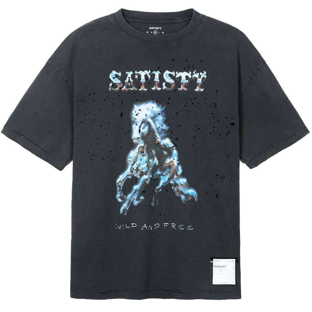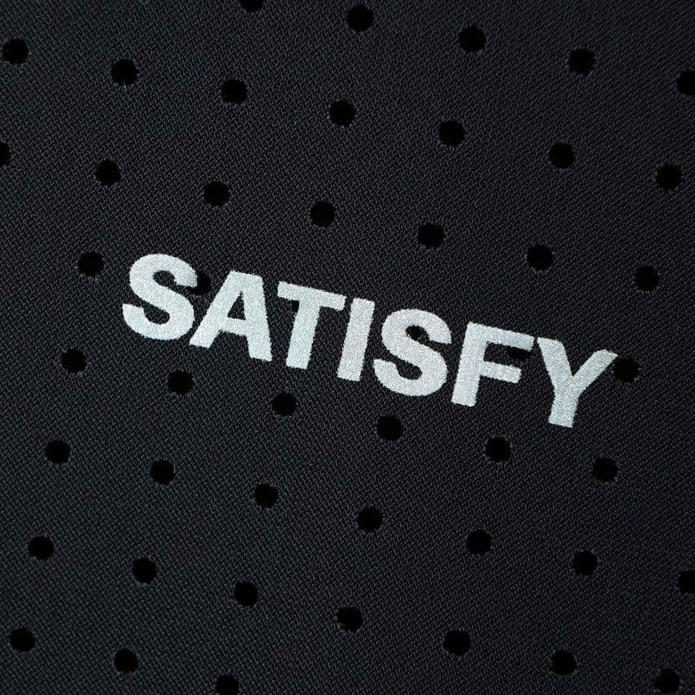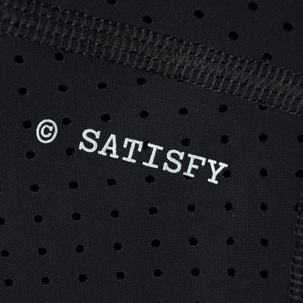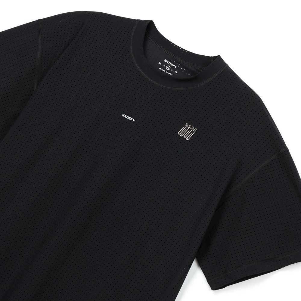 Satisfy Space-O™ T-Shirt, maglia tecnica da corsa in micro jersey italiano con aperture punzonate a precisione. 120 grammi. Stretch four-way per rispondere al movimento. Quattro S-Pin integrati per il fissaggio del pettorale in gara. Logo SATISFY in stampa riflettente centrale. Logo stealth-riflettente per la visibilità in notturna. Etichetta di lavaggio esterna e rimovibile.