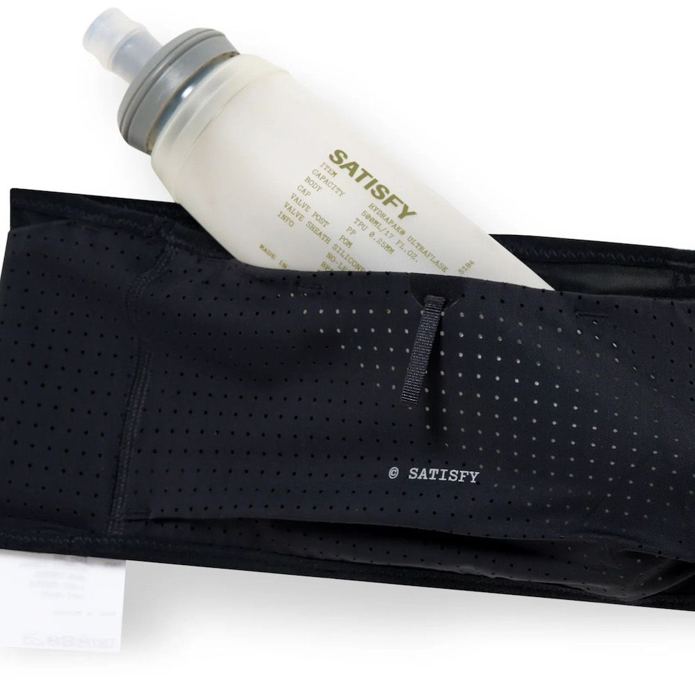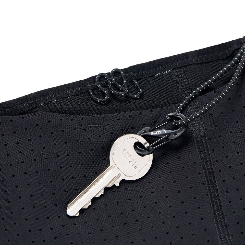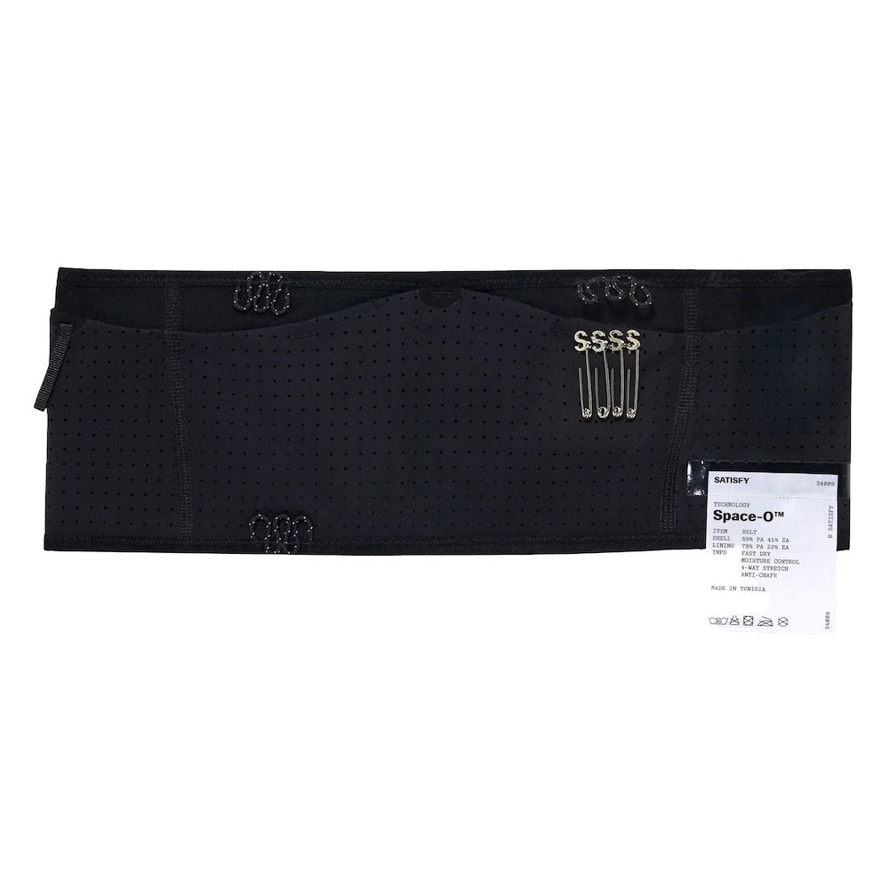 SATISFY Space-O™ Belt, cintura da running in micro jersey italiano Space-O™ con aperture perforate per la ventilazione. Il tessuto ha stretch a quattro direzioni che segue il movimento. Sistema a 4 tasche cargo per telefono, gel, chiavi, con barriere anti-sudore che proteggono l'elettronica nei momenti di massimo sforzo. Dettagli riflettenti per la visibilità al buio. Include 4 S-Pins SATISFY per fissare il pettorale frontalmente o lateralmente e mini moschettone S-Carabiner. Etichetta di manutenzione rimovibile all'esterno.