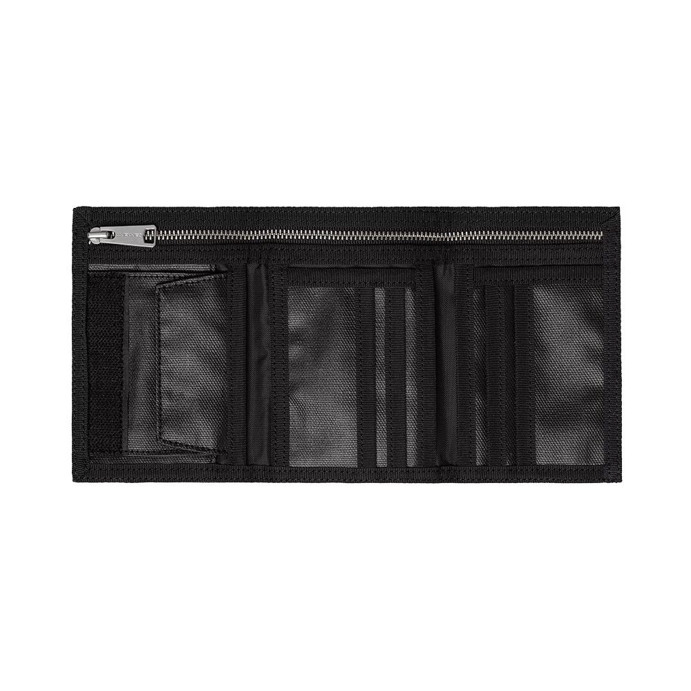 Carhartt WIP Dean Wallet, portafoglio tri-fold costruito in tela di cotone pesante pensata per resistere all’uso quotidiano e mantenere struttura nel tempo. La chiusura in Velcro® garantisce un’apertura rapida e una tenuta sicura, mentre l’organizzazione interna è studiata per un utilizzo pratico: il portamonete separa gli spiccioli, le sei tasche portatessere gestiscono carte e documenti essenziali, e lo scomparto con zip per le banconote aggiunge un livello di protezione ulteriore. Il formato tri-fold riduce l’ingombro quando chiuso, mantenendo ordine e accessibilità. L’etichetta quadrata stampata sul fronte identifica il modello con un segno riconoscibile e misurato, coerente con il linguaggio funzionale del marchio.