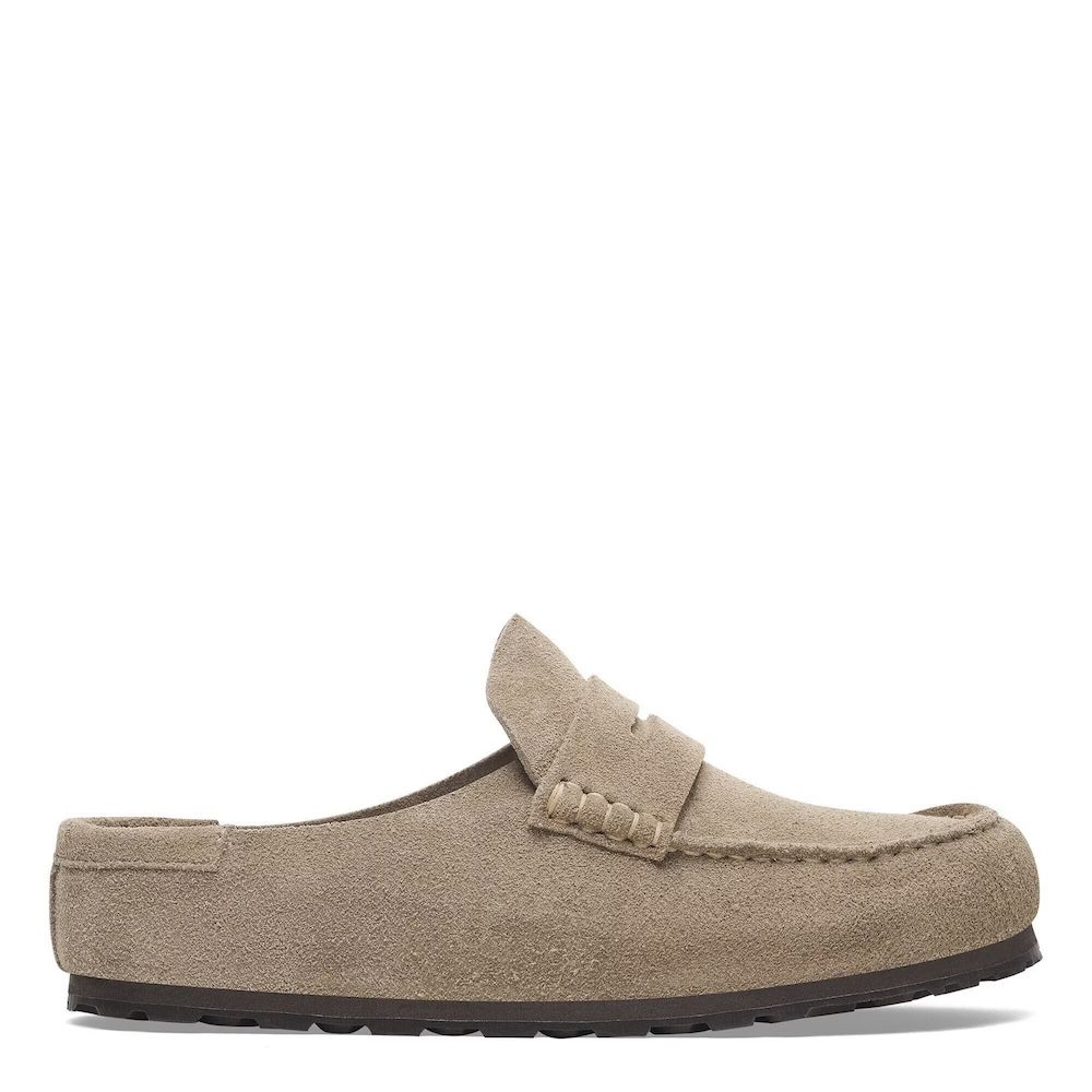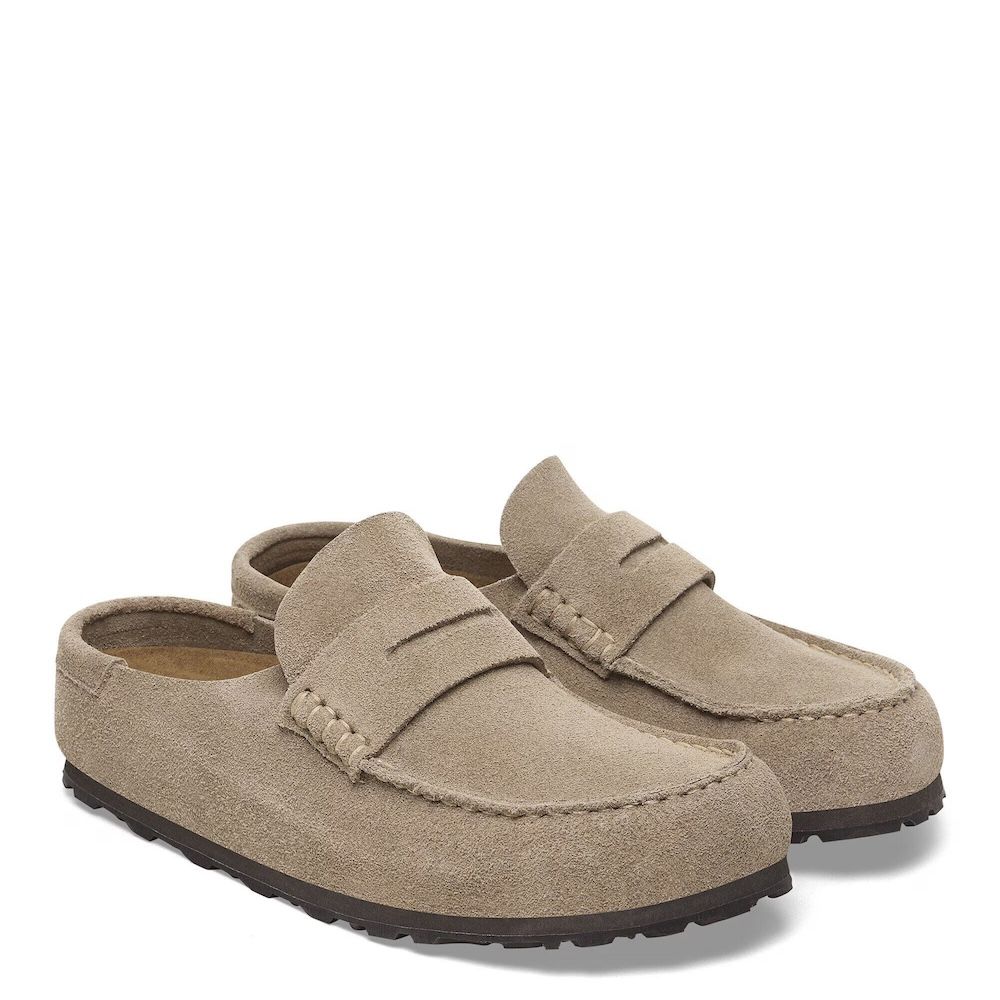 Birkenstock Naples Wrapped, mocassino chiuso in pelle scamosciata che porta la comodità del plantare Birkenstock in una forma più strutturata. La cucitura a vista sul bordo sottolinea la costruzione e dà carattere al pezzo. La pelle scamosciata è morbida e avvolge il piede, assorbe l'umidità e si adatta con l'uso. Plantare anatomico in sughero e lattice, sottopiede in pelle scamosciata traspirante. Suola in EVA e gomma che ammortizza senza perdere contatto col terreno.