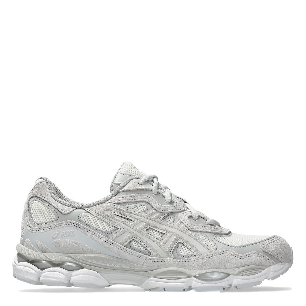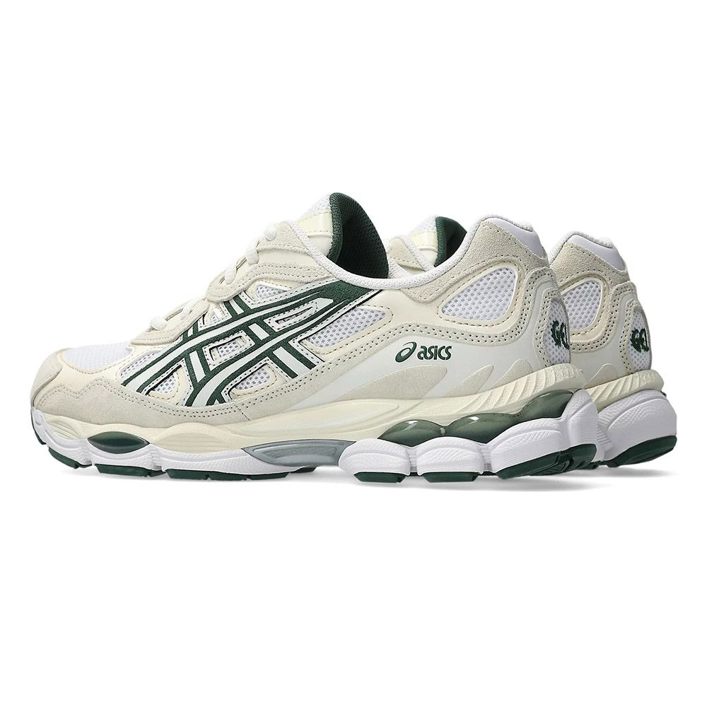 ASICS GEL-NYC, sneaker che mescola riferimenti running anni 2000 con tecnologie di ammortizzazione attuali. La tomaia riprende le linee della GEL-NIMBUS 3 e i dettagli decorativi della GEL-MC PLUS V, con rivestimenti in pelle scamosciata su sottostrati in mesh traspirante. L'intersuola deriva dalla GEL-CUMULUS 16 e combina schiume leggere con inserti in tecnologia GEL su retropiede e avampiede.