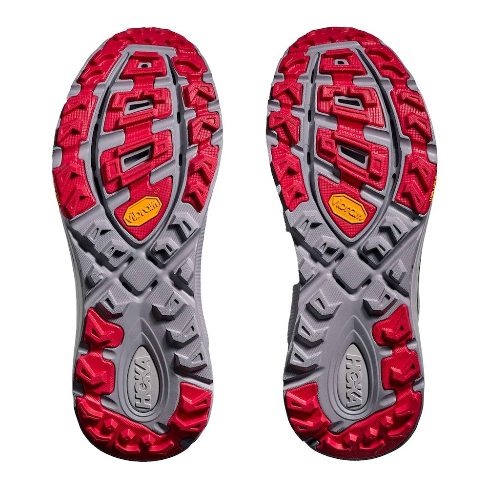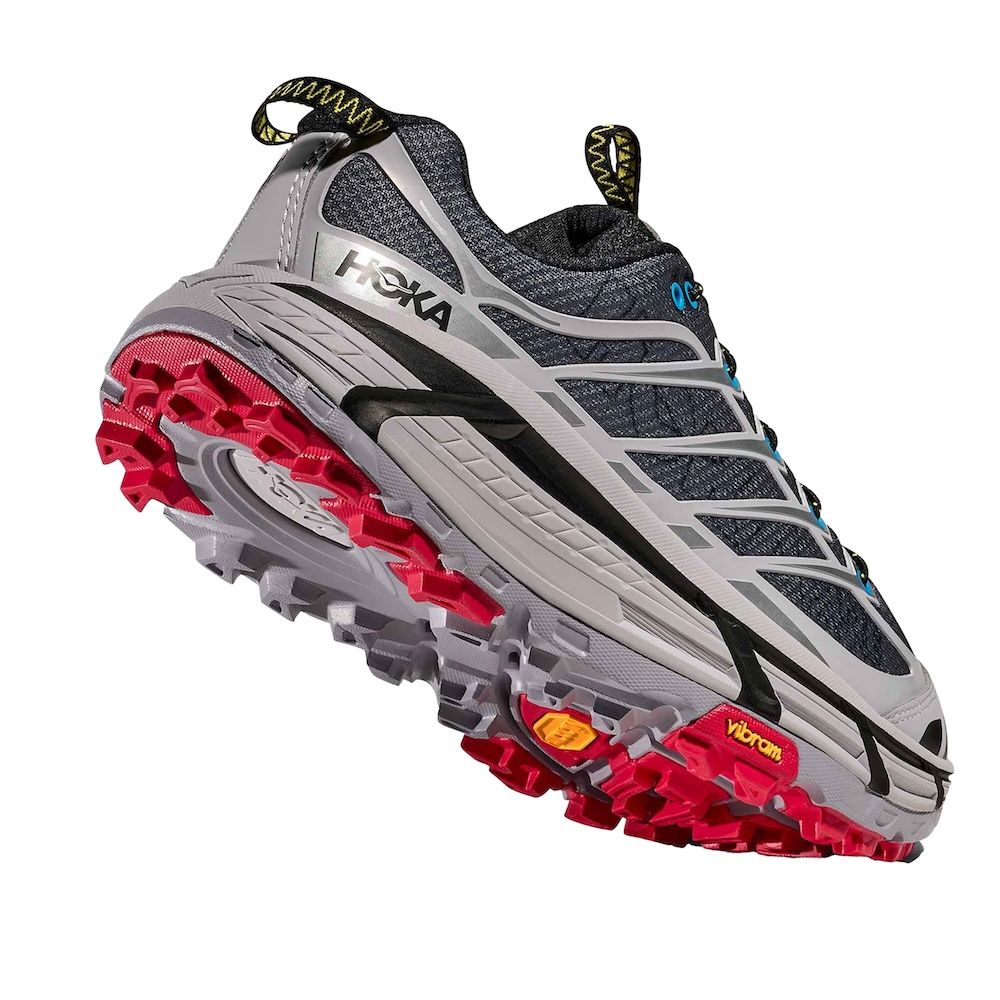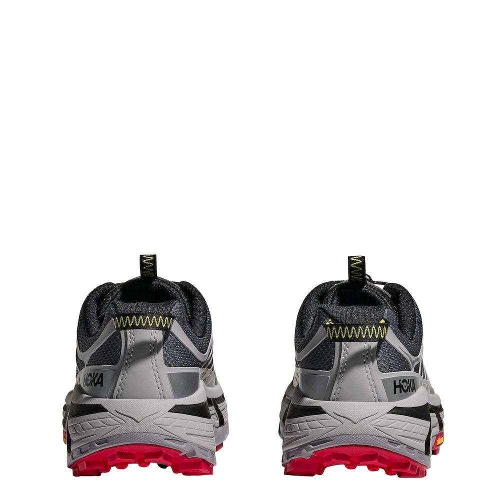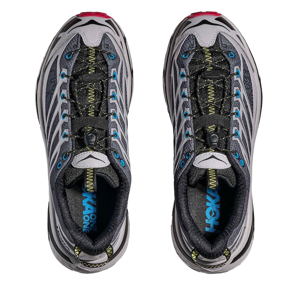 Hoka Mafate Three 2 Wordmark, sneaker che fonde elementi d'archivio con tecnologie contemporanee. Questa riedizione combina l'intersuola ammortizzata della Mafate Speed 2 con la tomaia caratteristica della Mafate 3, creando una silhouette ibrida pensata per l'uso quotidiano. La costruzione include mesh traspirante con rinforzi termofusibili, sistema di allacciatura rapida e linguetta a soffietto per una calzata ottimale. L'intersuola in EVA sagomata garantisce ammortizzazione bilanciata, mentre la suola Vibram® Megagrip assicura trazione su diverse superfici.